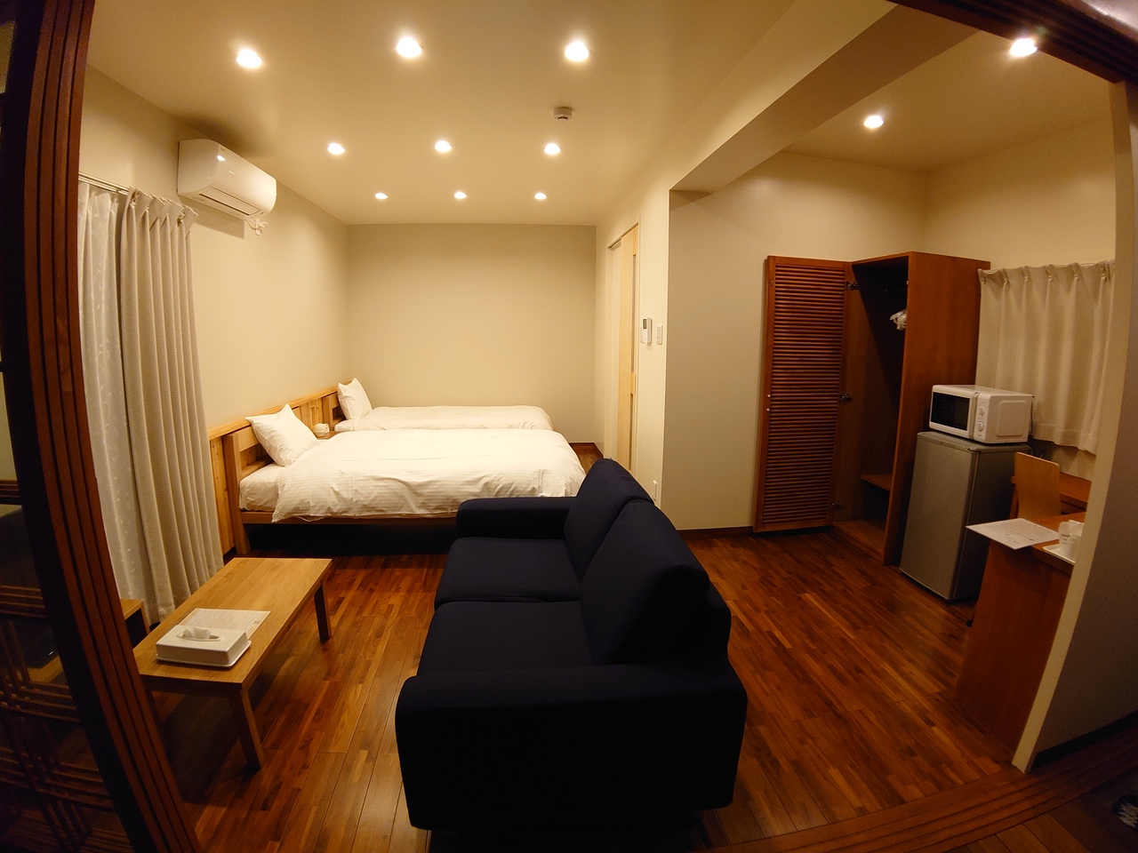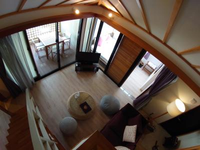 友達と二人で泊まるには部屋をもて余すくらい広くて、快適でした。ロフトは写真とるだけでしたが、人数多くても大丈夫だと思いました。部屋にドラム式洗濯機があるのが助かりました。部屋は良かったのですが、チェックイン、チェックアウトの時の従業員の対応は今一つ。従業員研修された方が良いのではないでしょうか。