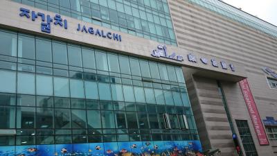 初めての釜山で立地がいいこのホテルを選びました。チャガルチ駅で降りて7番出口から歩きましたが、5番出口が1番近かったです。一階にコンビニ、スタバがあるし、すぐ近くにはロッテリア、ホテル周辺にはレストランや屋台がたくさんあるので、食事には困らないです。両替もホテルのフロントの方に聞いて、どの通りかを教えてもらいました。