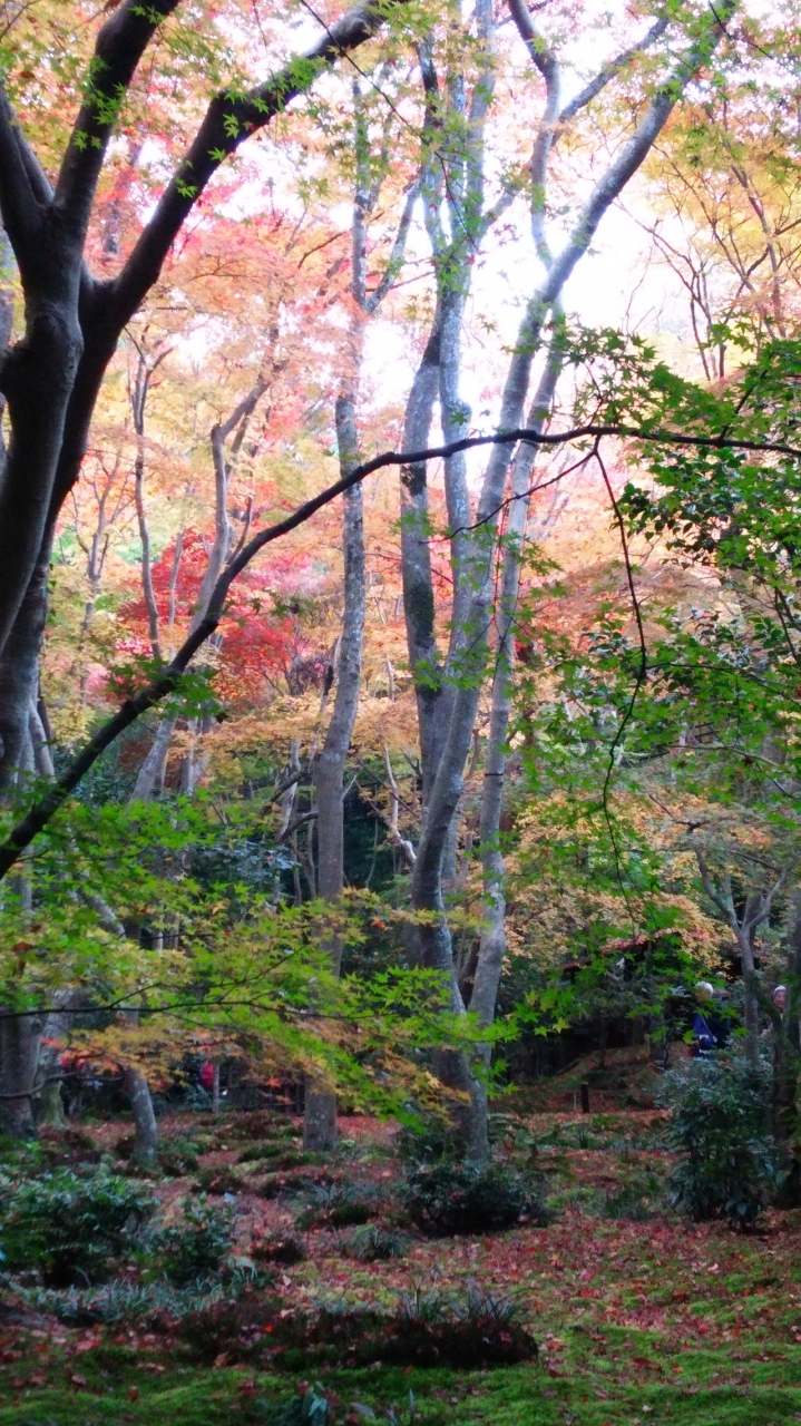 他の寺に比べるとここは観光客も少ない方でした。紅葉見頃の京都の観光客の多さはすごいので、まだましだった。苔が青々としていて、木々が色づいていてきれいでした。