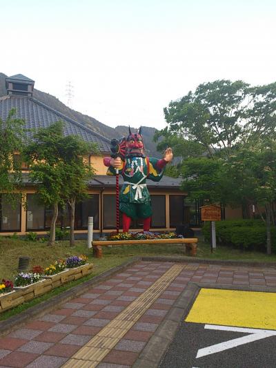 温泉の外にある鬼のオブジェに子供が驚いていました。- 旅行時期