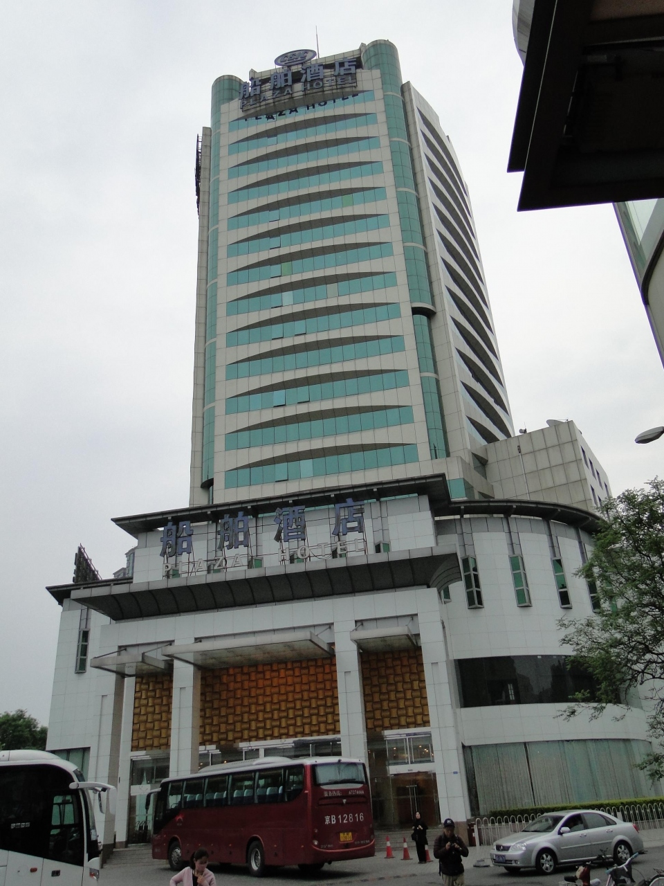 ロビーは地階にあって広くてゆったりしています。朝食会場のレストランは24階で眺望は良いんですが靄がかっていて視界は悪いですね。エレベーターは外の見えるタイプです。客室は広いです。バスタブ無しシャワーのみ。