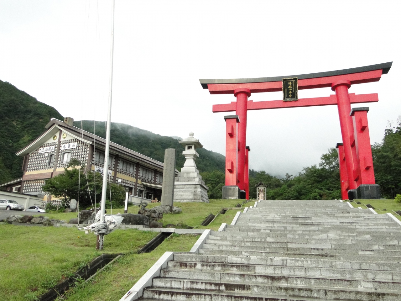 大鳥居まではマイカー。そこからバスが有ります。