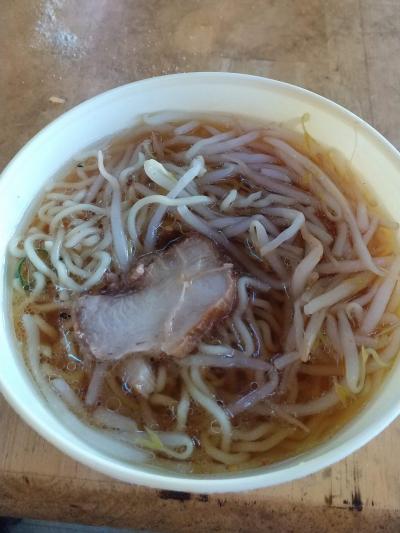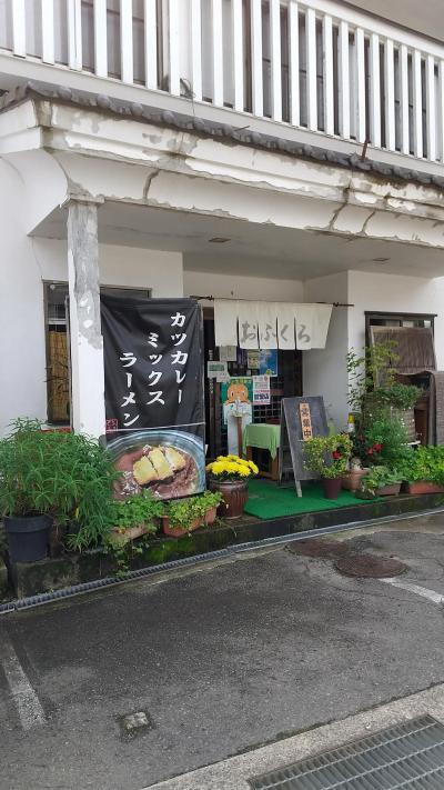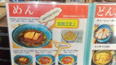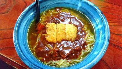 悪いけどこんな田舎の食堂で名物なんて。と思っていたら。大き目の平たい鉢のような皿にカツカレーラーメンがドーンと出てきました。これ全部食べられるかなと。おかみさんがカツから食べてください。と言われカレーに絡めて食べ始めました。(。´・ω・)ん?何だか美味しいな。カレーの中にチャーシューがゴロゴロあるし。で、ラーメンの下にご飯がいい感じにふやけていてカレーおじや でした。結局は完食しました。美味しかった。