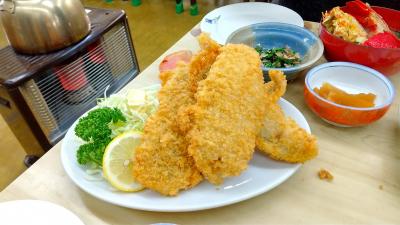 以前何かで見た記憶を頼りに御宿迄行って来ました。御宿からは少し大原方面に行きます。外房ライン脇で直ぐに分かります。11:30頃入店しました。先客が2名。その後10数名が入りました。仕事の方のランチと言う感じです。待つこと15分位かな。あまりの大きさにびっくりしました。30㎝程です。私の腕位在ります。食べても食べても減らない。もうお腹いっぱいです。