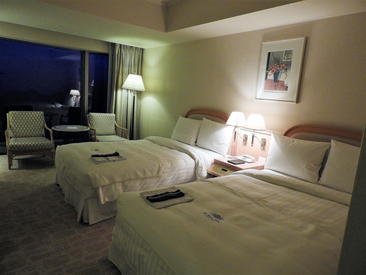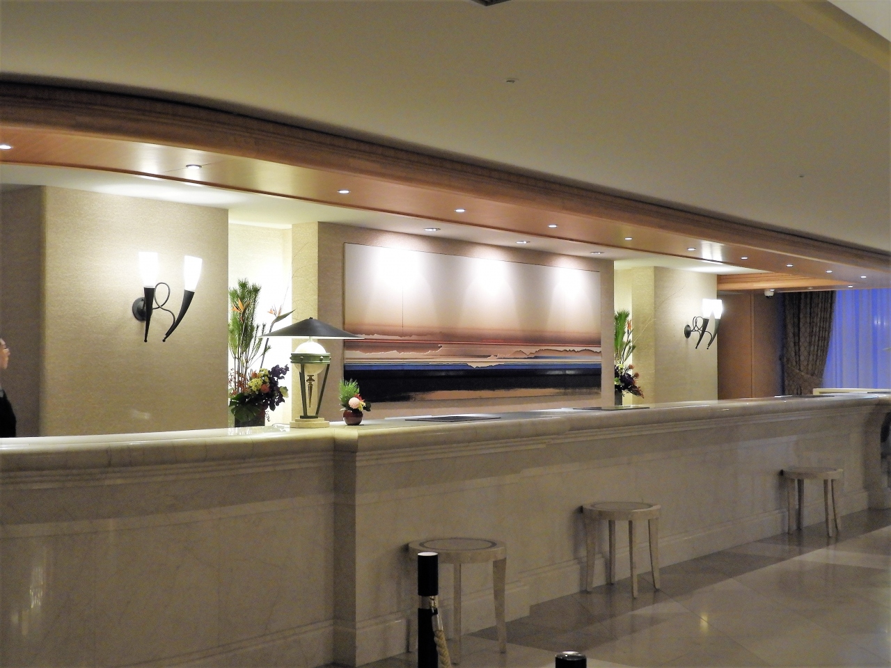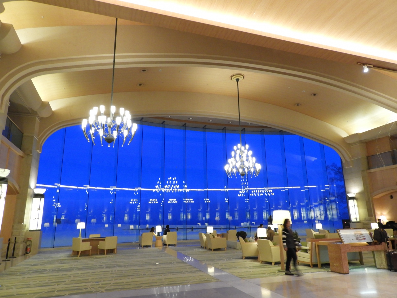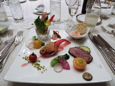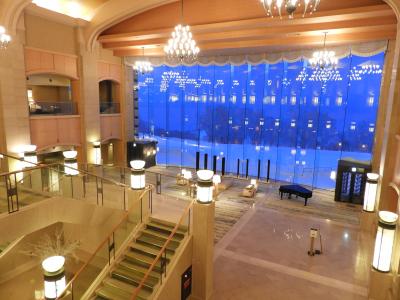 今回2度目の宿泊なので館内は大体分かっているので気が楽です。ロビーは広く開放的です。部屋はツアーなのですが40㎡あります。夕食はフレンチ、朝食は和朝食を選びました。それぞれ美味しく頂きました。5年前は記念日なので上の階のレストランで豪華な食事をしました。朝食はバイキングでした。サミット会場のウインザーホールで食べたくて。