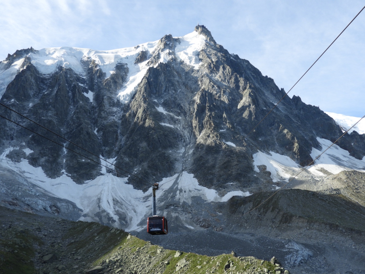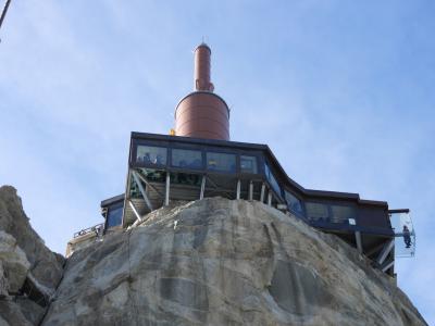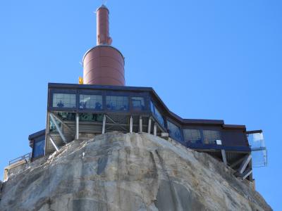 今回2度目です。35年前に行った時は良く分からなかったけど、今回パンフレットを貰い航空写真を見たら、成る程こうなっていたんだと。納得しました。シャモニーは海抜1035m。ロープウエー乗り継いで3777m。更にエレベーターで65m登るとエギュイーユデュミディの展望台3842m迄行けます。
