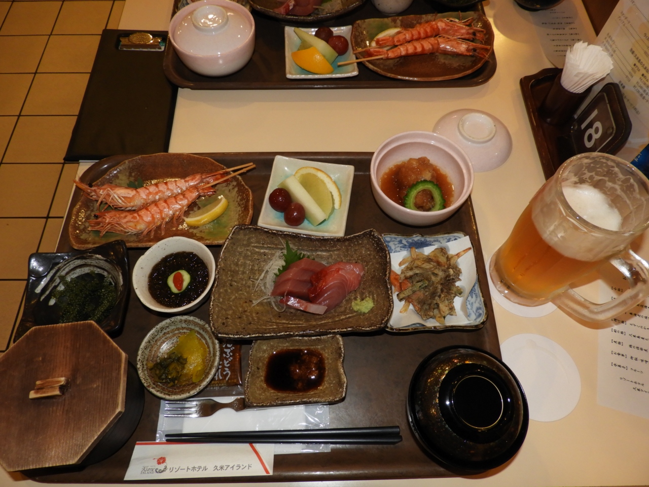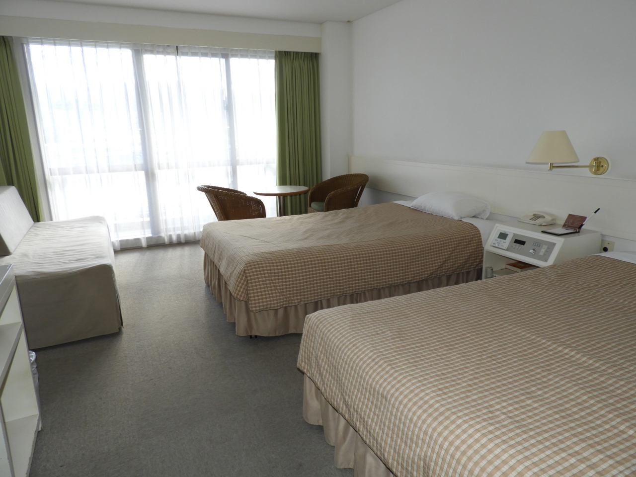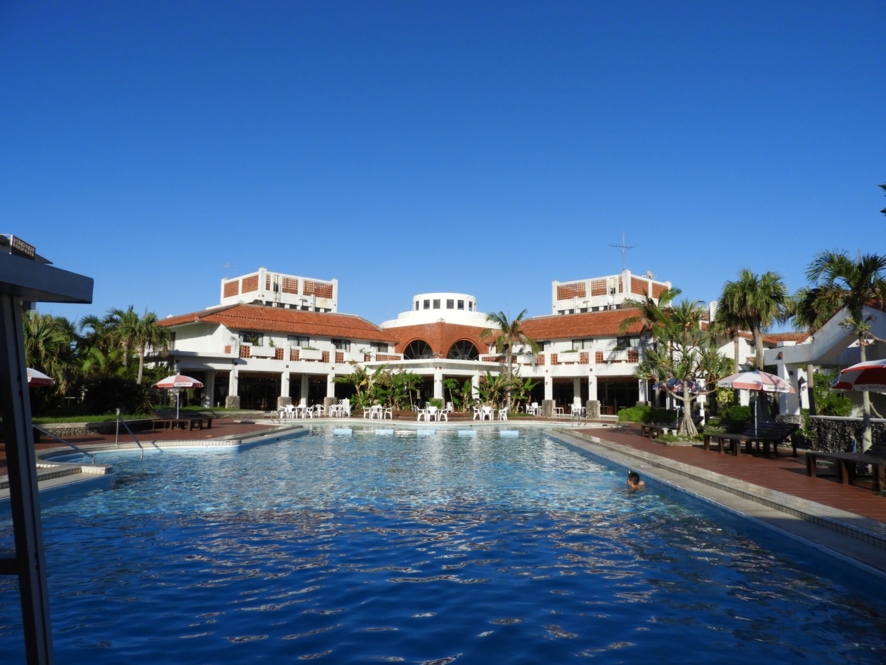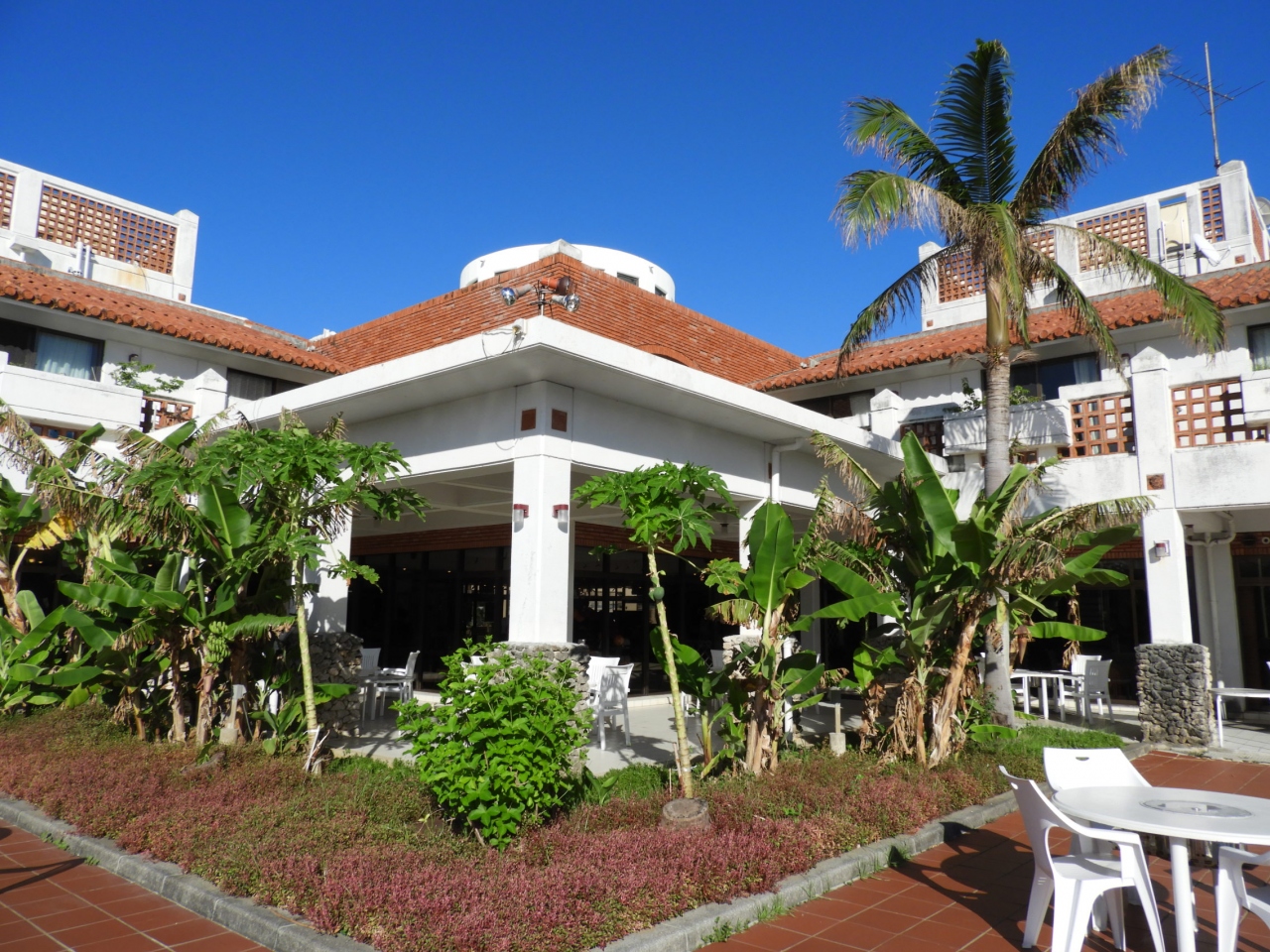 久米島にしては大型のホテルです。部屋は広いですが古いですね。売店でアルコールが買えるので便利です。大浴場は有りません。エレベーターは一機なので混雑時は階段を利用です。今の時期空いていたのでOKですが。徒歩5分ほどにファミリーマートがあるので買い物に便利です。
