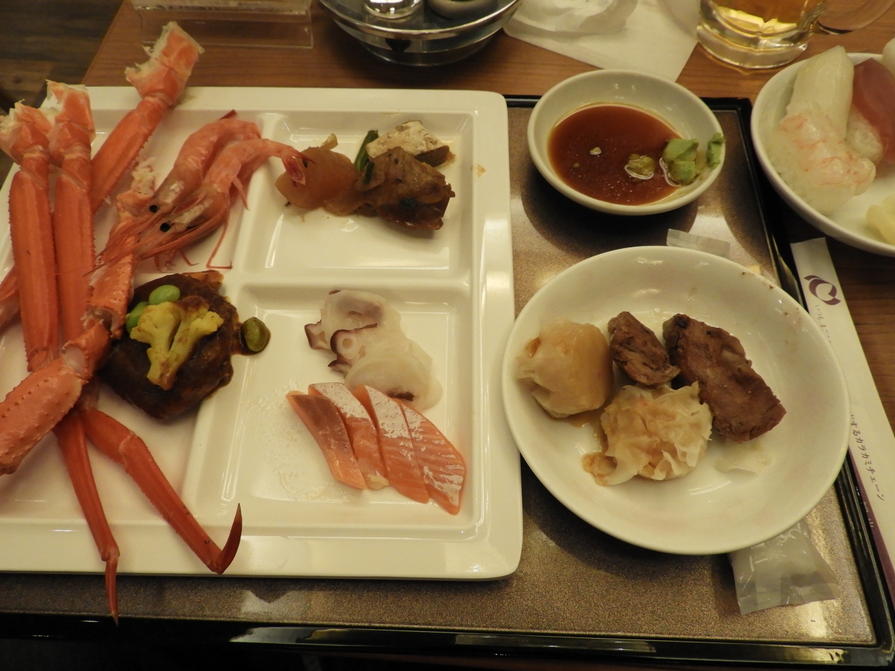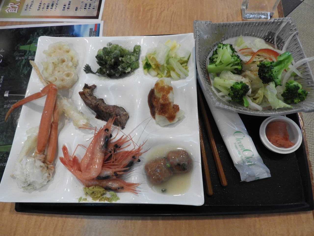 今回はJTBのツアーで宿泊したので食事はバイキングです。当日は大陸の団体が少なくて割と静かでした。食事内容は普通です。客室内は掃除も行き届いて綺麗ですね。温泉もまあまあでした。銅メダリストの高橋沙羅さんムードです。高橋さんの実家がセブンイレブンを経営しているので寄って見たかったけど吹雪なので外に出られず。
