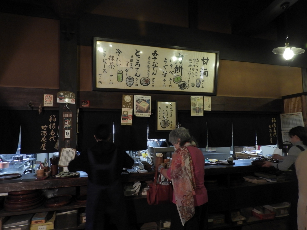 ここは、何度も通過していて初めて寄りました。中に入ると暗いので目が慣れるまで時間がかかります。目が慣れると囲炉裏が見えてきます。暗いのはその昔、囲炉裏で炊いた煙でいぶされた為なのでしょう。お客さんも結構いました。甘酒と田楽を頂きました。甘酒は甘味料を使ってないそうです。