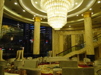 ロビーは地階にあって広くてゆったりしています。朝食会場のレストランは24階で眺望は良いんですが靄がかっていて視界は悪いですね。エレベーターは外の見えるタイプです。客室は広いです。バスタブ無しシャワーのみ。