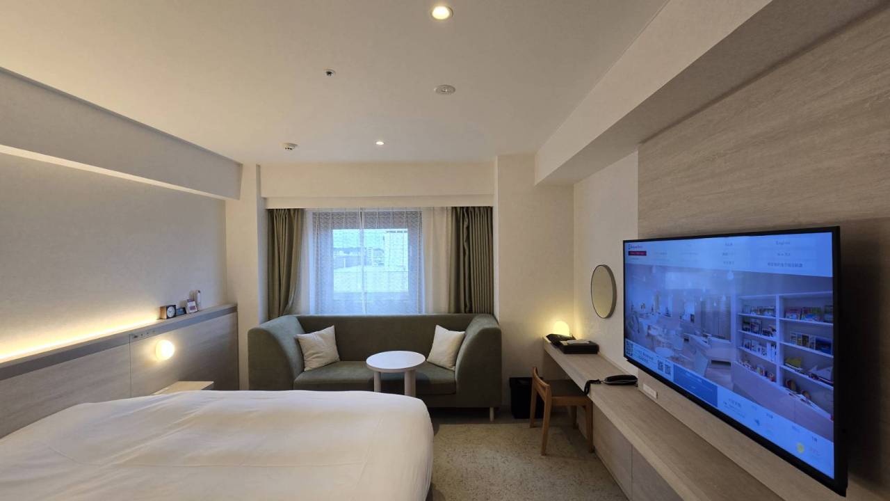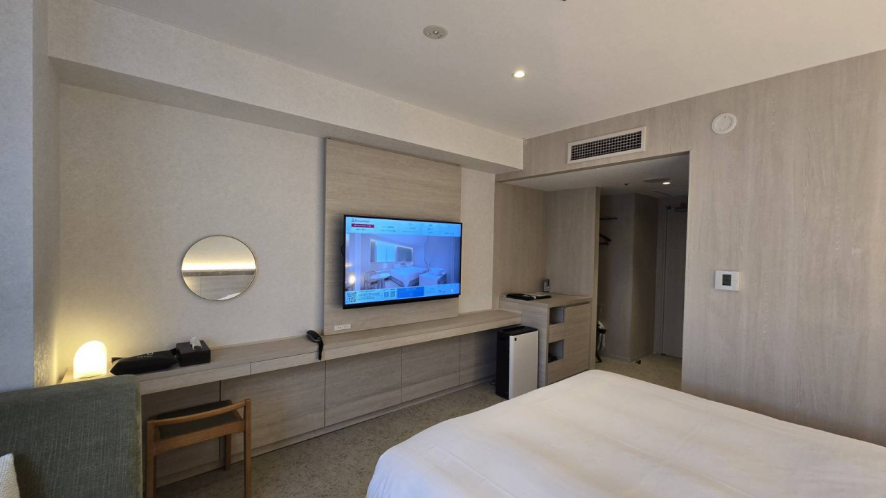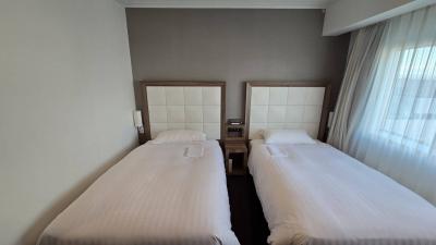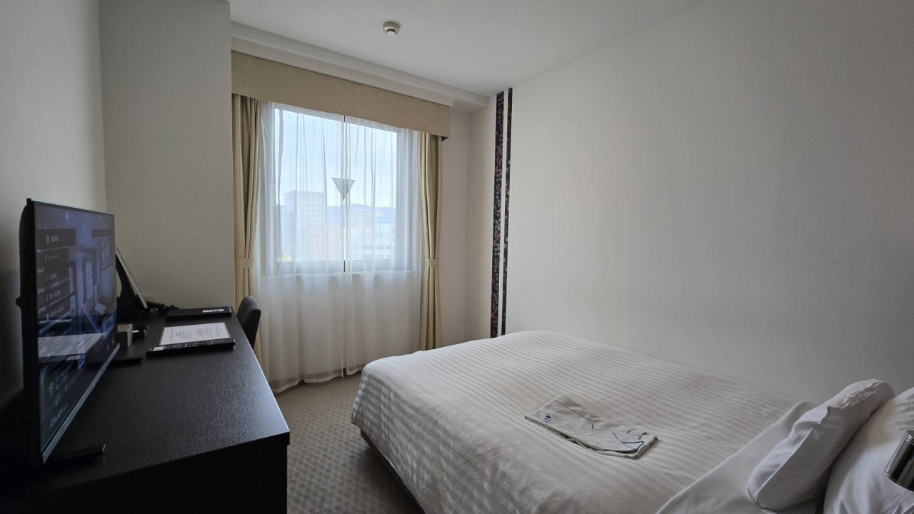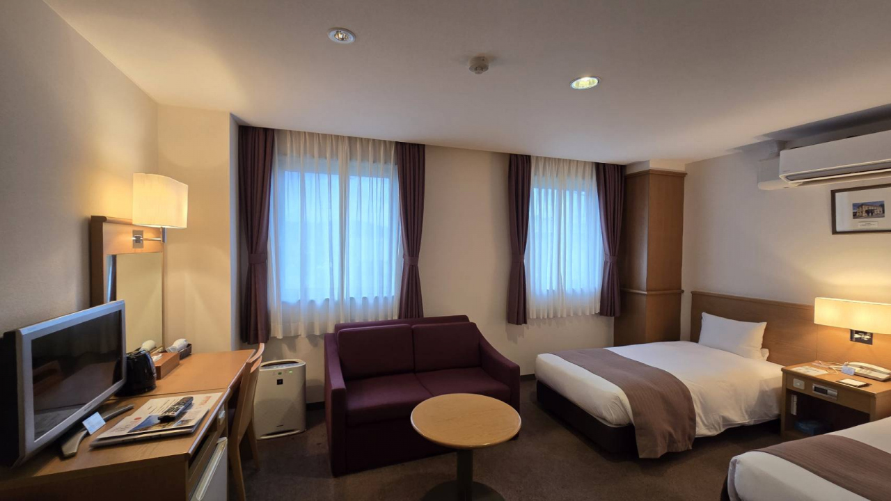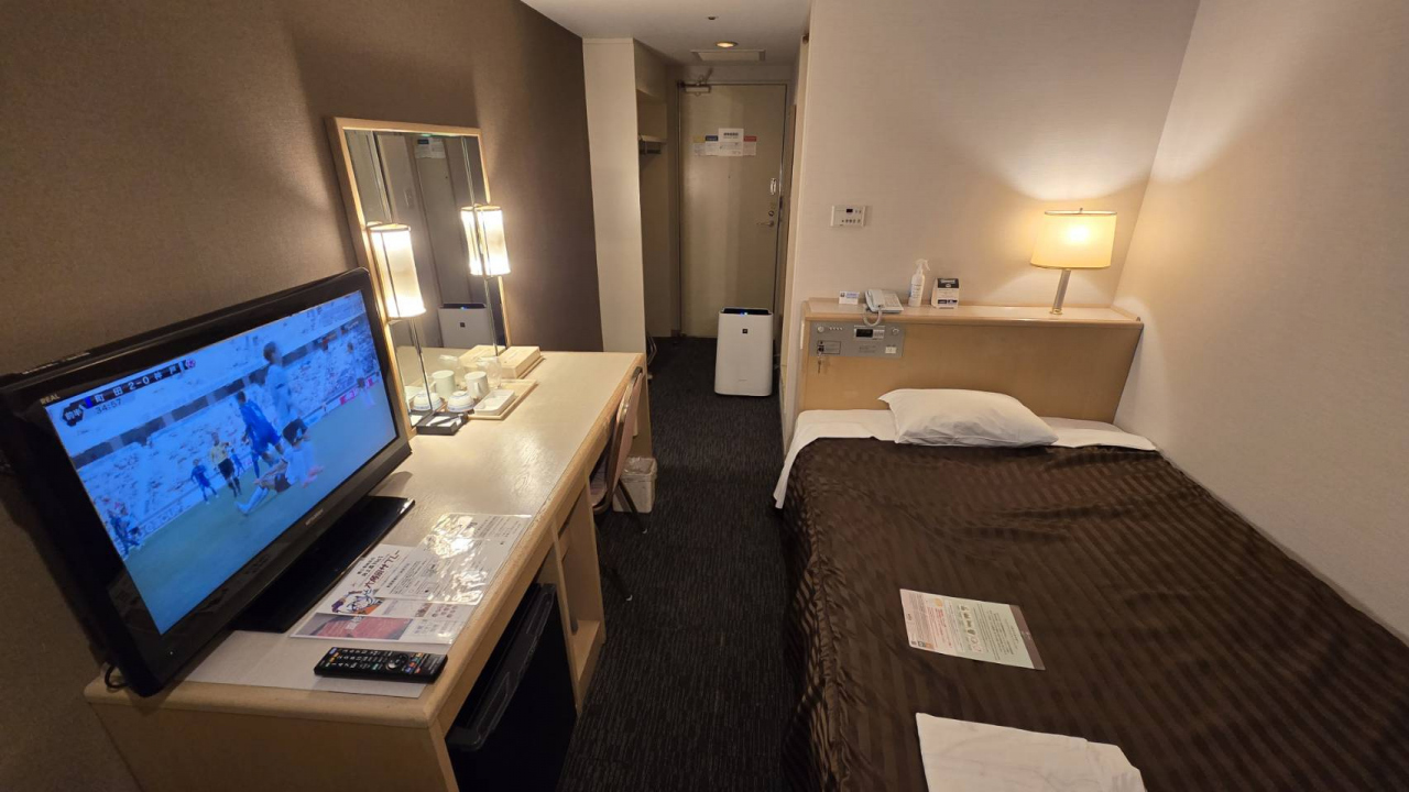 地方のホテルで大手チェーンホテルのように眠りにこだわったデュベスタイルのベッドメイキングやシモンズのベッド(120cm幅)、加湿空気清浄機等を採用しているホテルは少なく貴重で良かったです、またエアコンも新しく、予約サイトの画像より大きめなテレビ32インチ?(スマートテレビでは無い)でした