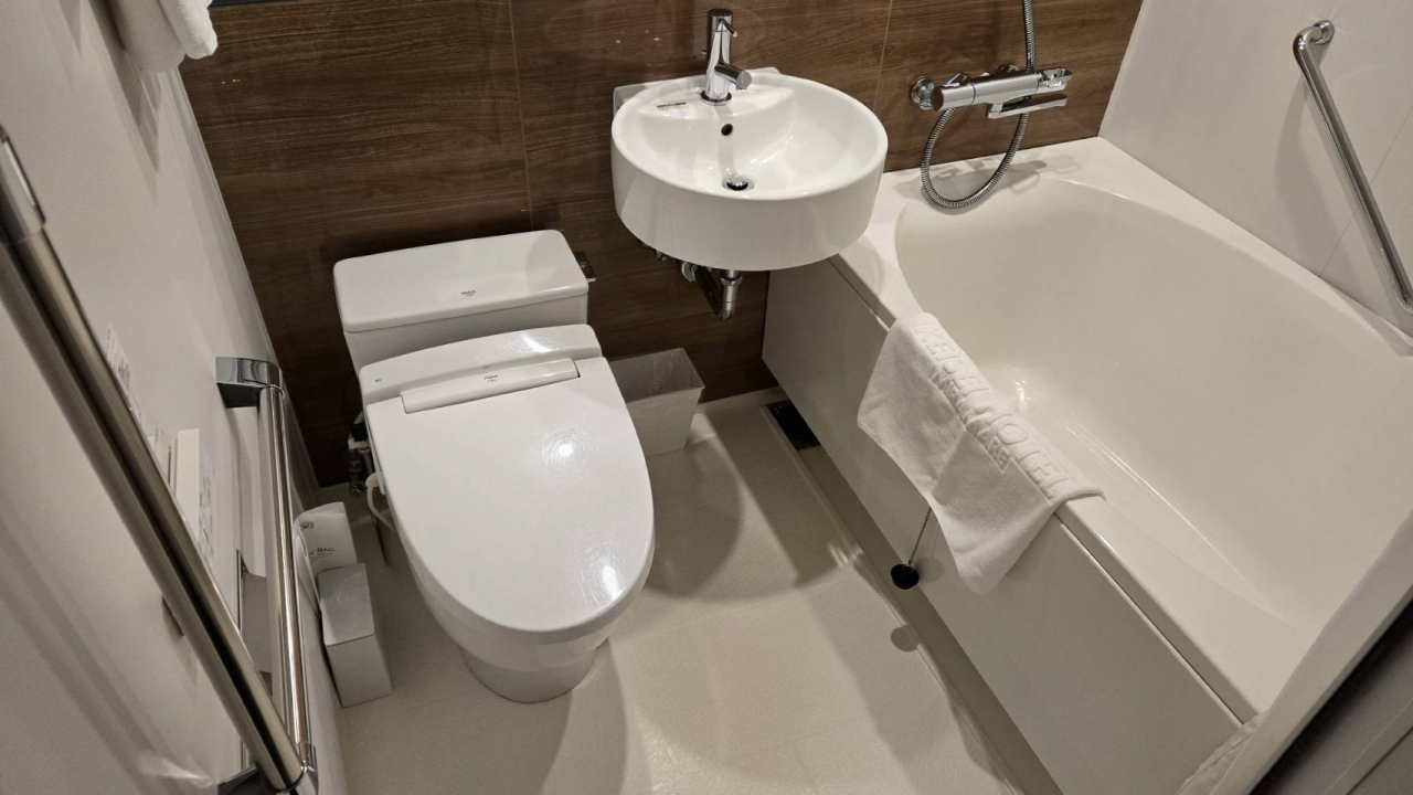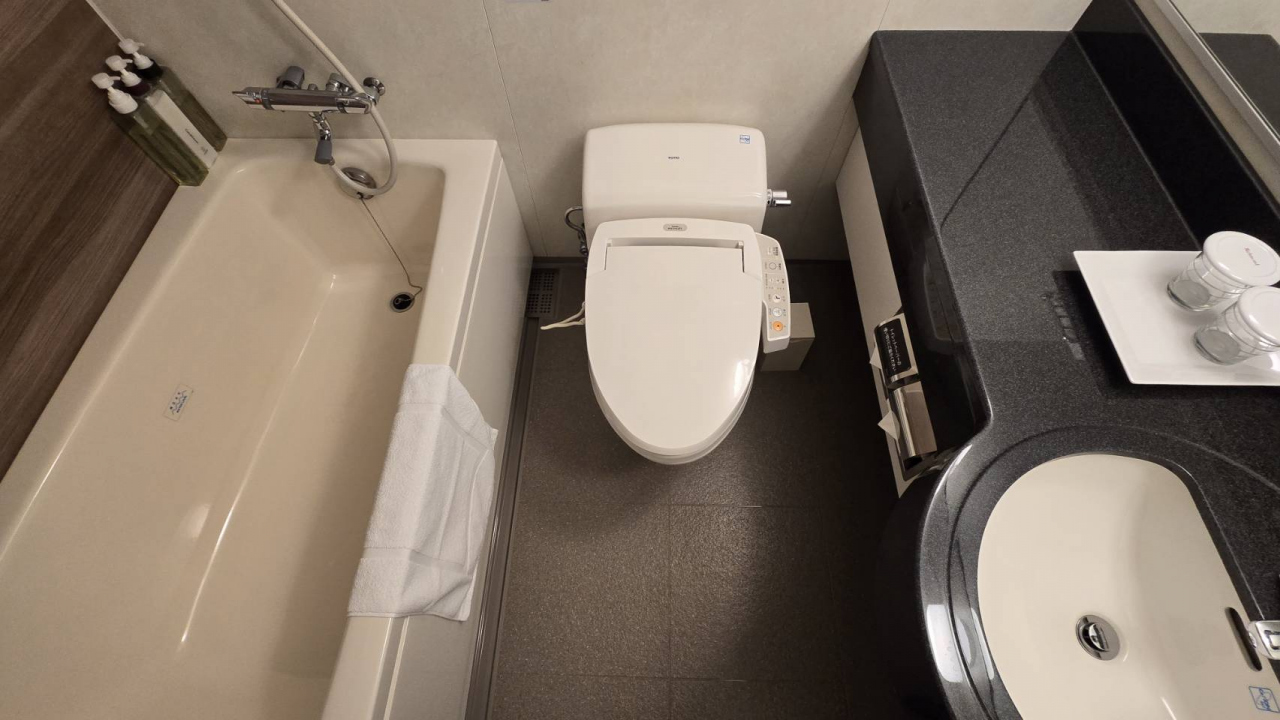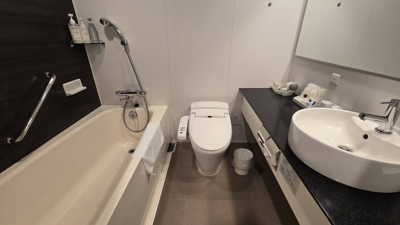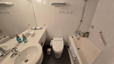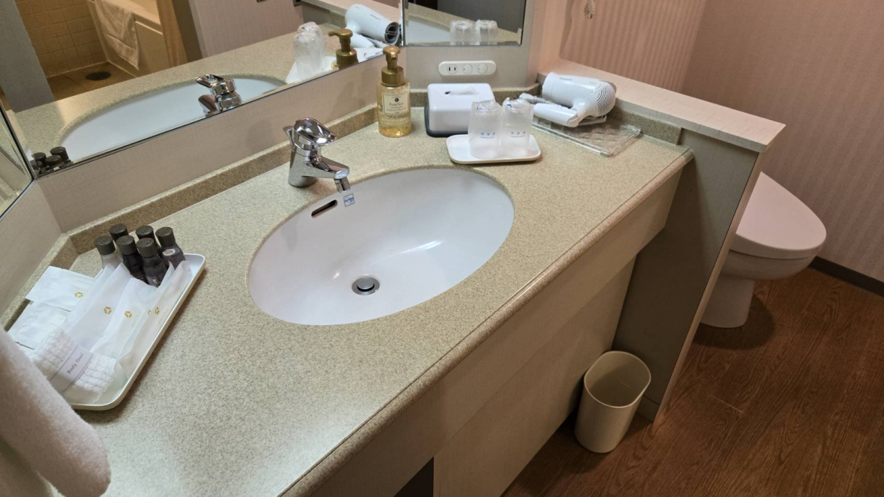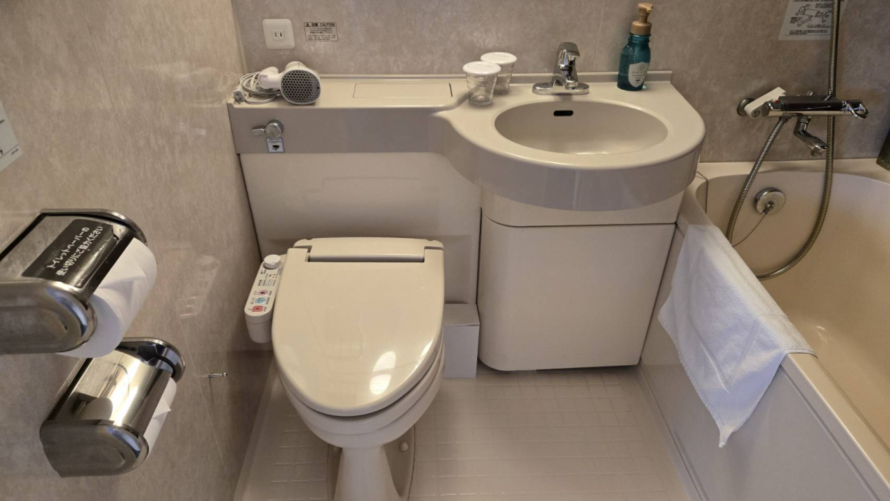 部屋はシモンズのベッドにデュベスタイルのベッドメイキング、貸出品で加湿空気清浄機も用意してくれるので快適に過ごせます、また水回りは洗面台とトイレは同室ですが使いやすくお気に入りです、アメニティは部屋に準備されています