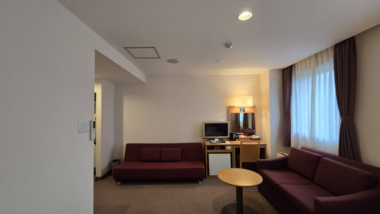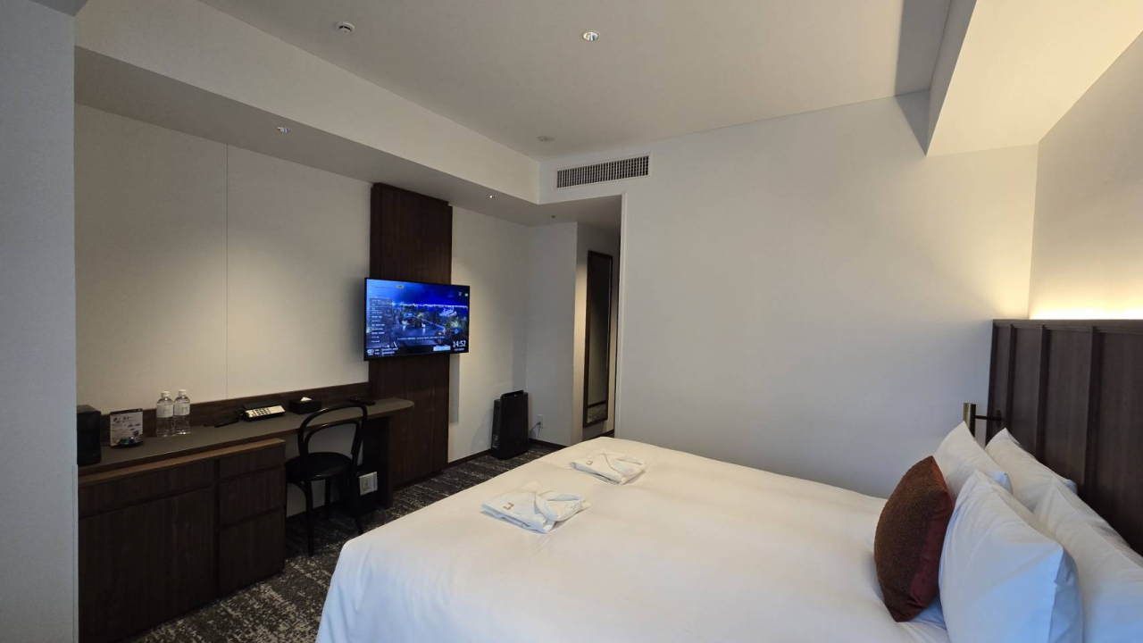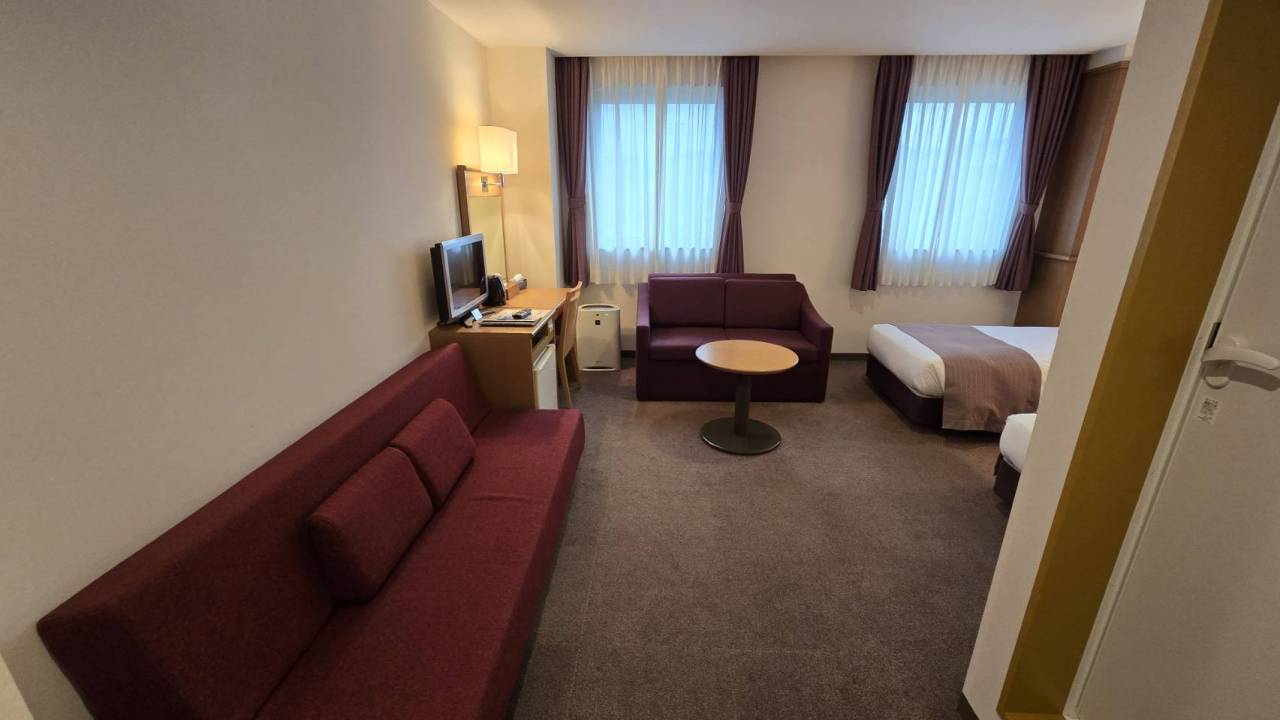 部屋は26㎡でデュベスタイルのベッドメイキングのシモンズのベッドに加湿空気清浄機、テーブルにソファーベッド2台とゆっくりできました、宿泊費がリーズナブルなので満足ですがベッドの幅とテレビがもう少し大きいと良かったですね