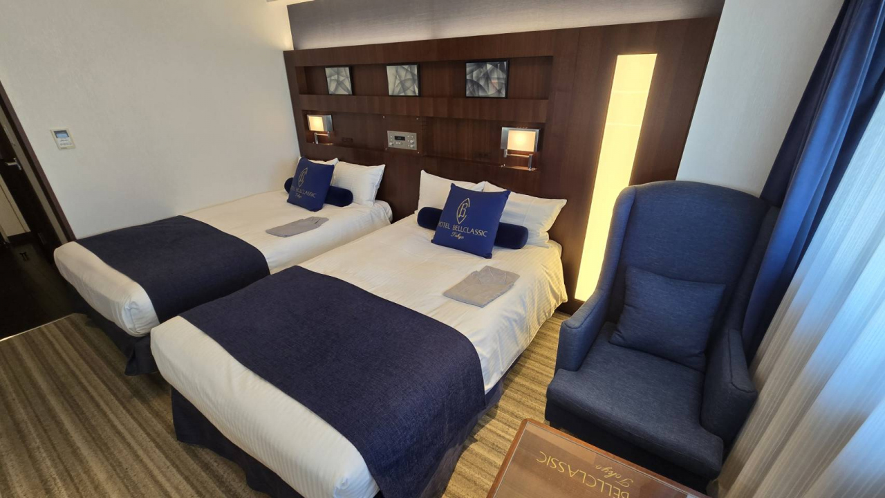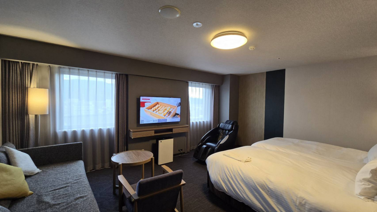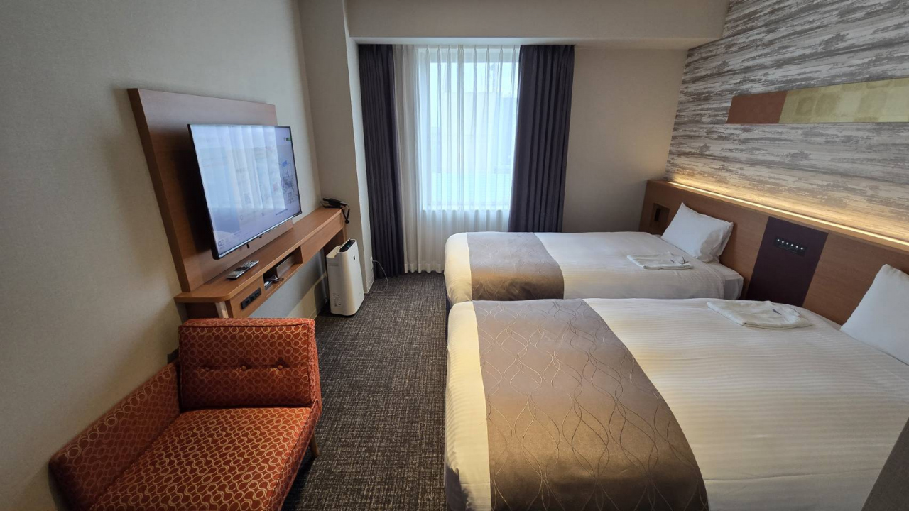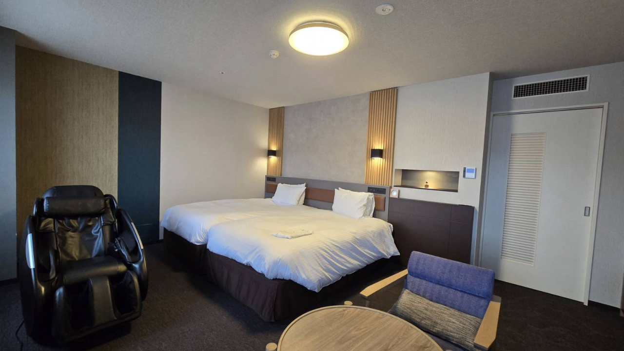 お気に入りのホテルの、お気に入りの部屋で3泊ゆっくりしました、ツインルームは34㎡ありハリウッドツインのベッドに、加湿空気清浄機、壁掛けのスマートテレビ、マッサージチェア、テーブルにソファーとゆっくりくつろげ快適に過ごせました