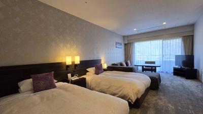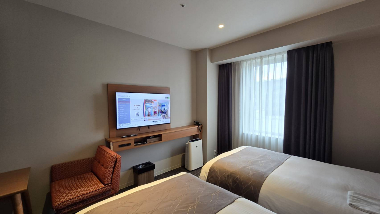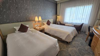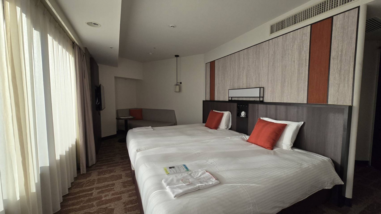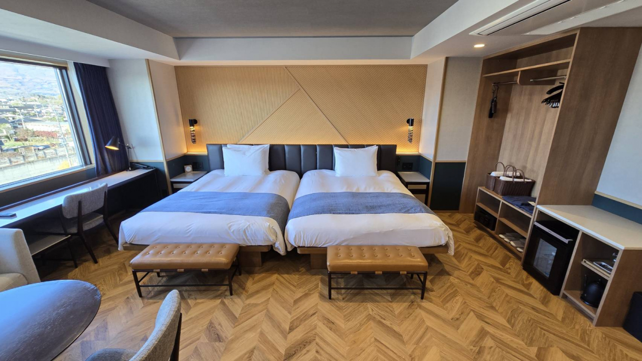 お気に入りのホテルの、お気に入りの部屋で3泊ゆっくりしました、ツインルームは34㎡ありハリウッドツインのベッドに、加湿空気清浄機、壁掛けのスマートテレビ、マッサージチェア、テーブルにソファーとゆっくりくつろげ快適に過ごせました