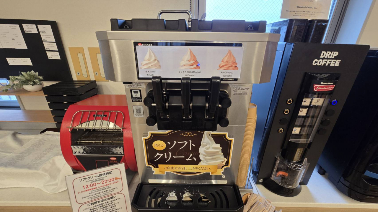 価格はリーズナブルですが、宿泊者は朝食無料やコーヒーのサービス、口コミで氷は有料と書き込みがありましたが無料の製氷機に電子レンジもありました