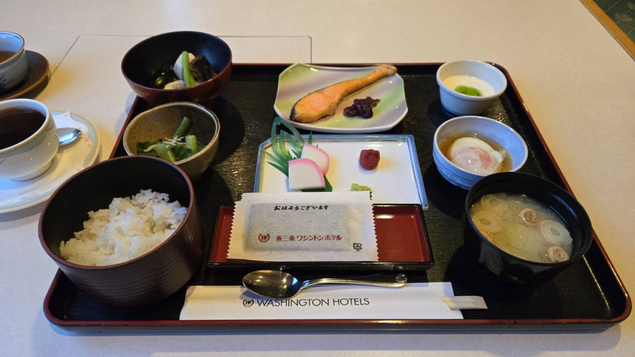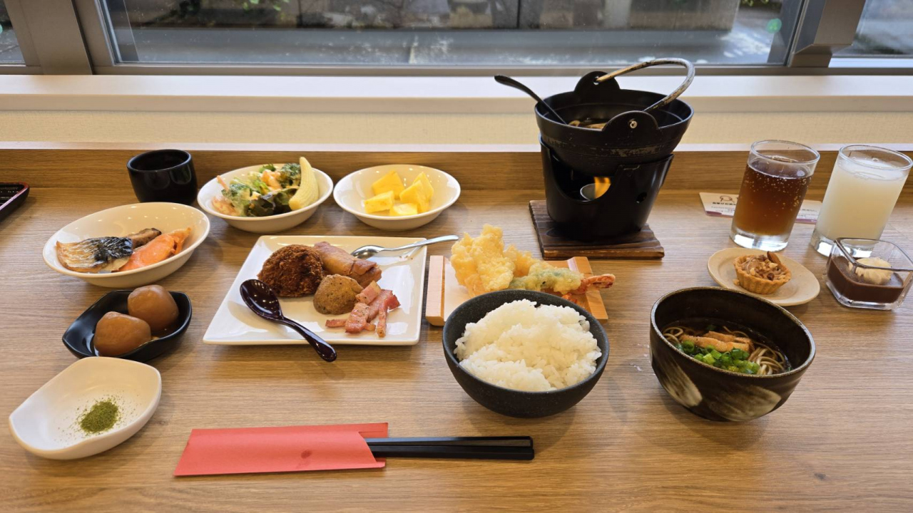 朝食は730分スタートのビュッフェでホテルの規模で考えたらスタートが遅く、口コミにあった長蛇の列が出来ていたら食べなくていいと思っていたが(宿泊プランは朝食付きしか無かった)、混雑が予想される日は早くスタートされるようで紅葉シーズンで混雑が予想されたみたいで7:00スタートで混雑前にゆっくり食事ができて良かったですが、今どき遅い7:30スタートの朝食も中々他では無いですね、実際朝食の終わった7:30位には結構な行列ができてました、時間毎の予約制等もう少し顧客の立場に立った工夫が必要に感じました、食事内容はオーダーで提供されるオムレツや、湯葉、釜炊きのご飯も美味しく良かったです