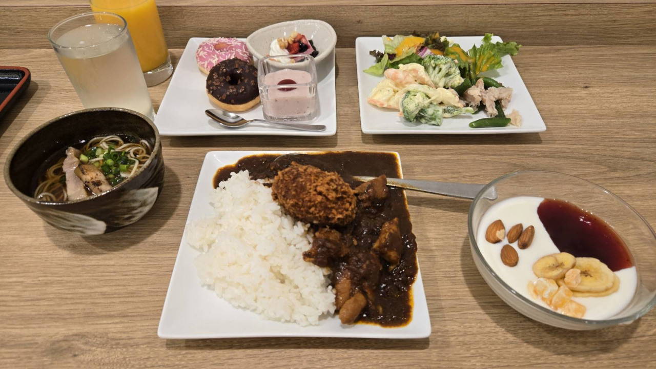 リッチモンドホテル山形駅前はラウンジサービスの時間が長く、コーヒーにソフトドリンク、美味しいソフトクリームのサービスもお勧めです、また最近限定80食で山形名物冷たい肉そばの夜食サービスもはじまってました、肉そばの肉は鶏の親鶏で歯ごたえもあり美味しかったです、また朝食もお勧めで、出来立ての芋煮や天ぷら、鳥中華そば等の名物や、ロイヤルのカレーフェアで日替わりで楽しめたのも良かったです、また朝食を取れない時には、朝食券がコーヒーや紫芋のラングドシャに交換してもらえるのも良いですね