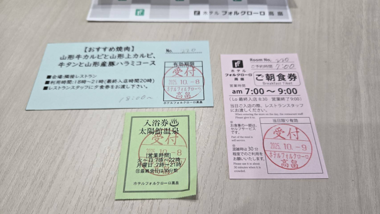 今回2食付で予約して夜はホテルの朝食会場兼、駅のやきにく屋さくらんぼの山形牛カルビと山形牛上カルビ、牛タンと山形産豚ハラミコースをいただきましたが肉も美味しく良かったです、追加で高畠ワインに、牛ハラミ、平田牧場のウインナー等を追加しましたがリーズナブルで美味しかったです