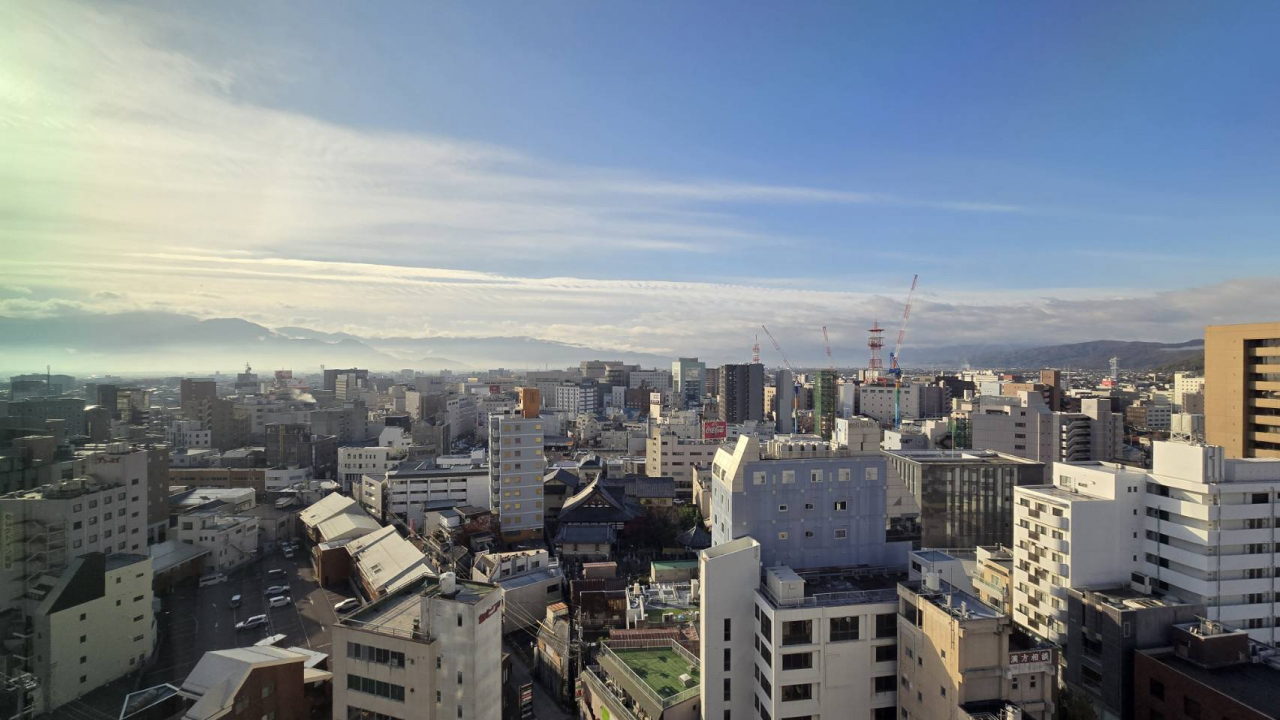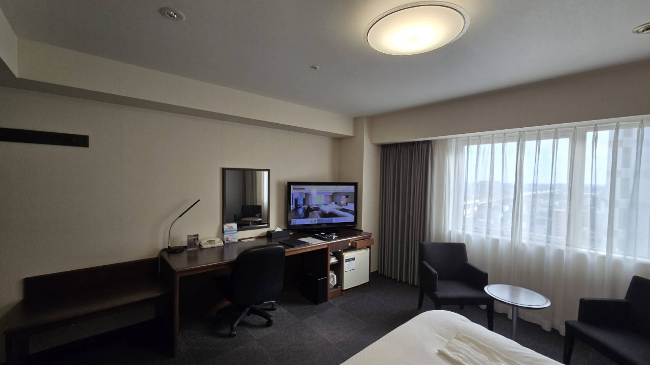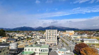 部屋はデュベスタイルのベッドメイキングに加湿空気清浄機、スマートテレビ、食事も可能なテーブルにソファーで快適でした、最上階12階の福島駅側にアサインされ眺望も良く、吾妻連峰の山並みに少し白くなった吾妻小富士、新幹線も良く見え良かったです