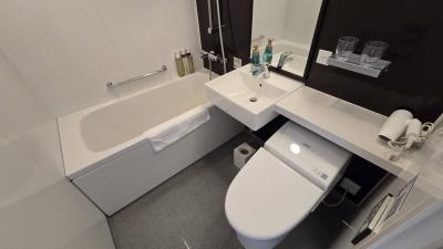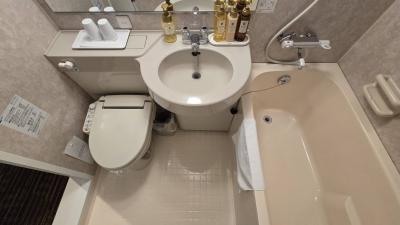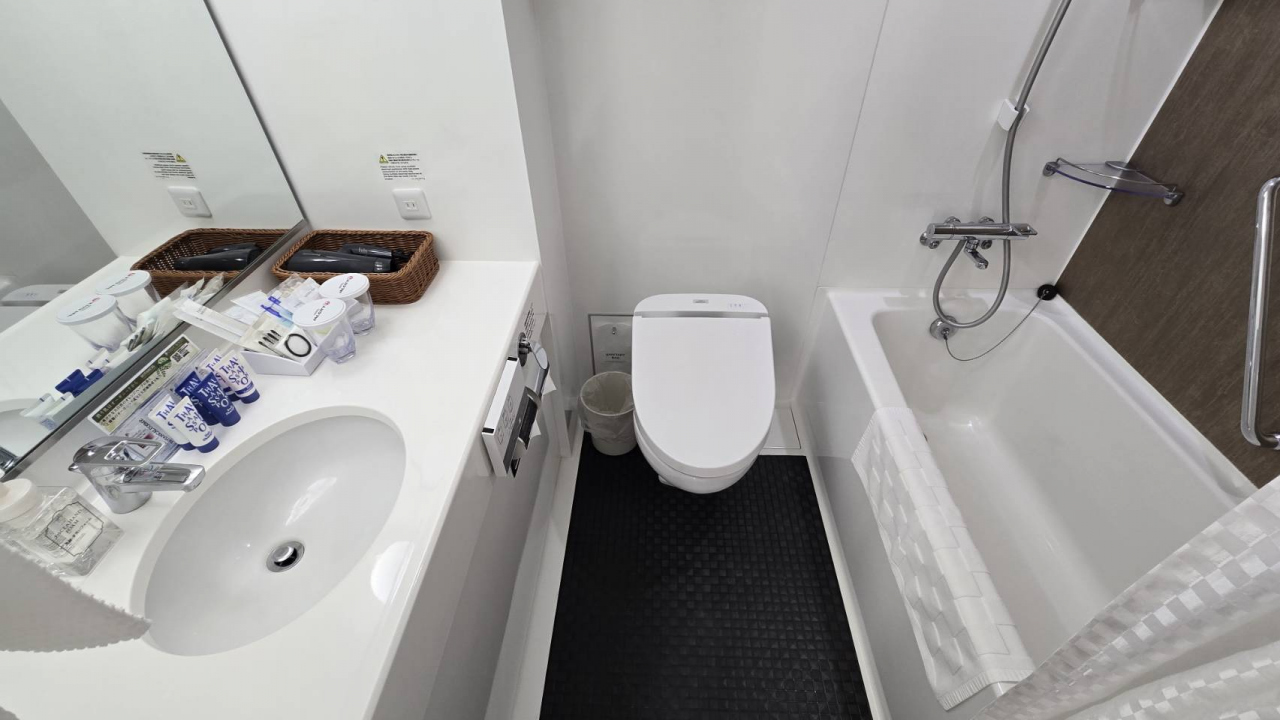 今回宿泊したモデレートダブル21㎡はデュベスタイルのベッドメイキングに加湿空気清浄機、大きめなテレビ(スマートテレビでは無い)、窓側にテーブルに椅子、お風呂独立に洗面とトイレは同室ですが快適に過ごせました、また色々なダイワロイネットホテルに泊まりモデレートダブルはよく利用しますが、ホテルによっては浴槽にオーバーフロー管が付いていて浴槽のお湯が浅くしか溜まりませんが、郡山はオーバーフロー管が無いので肩までゆっくりつかれるのも良いですね、またアメニティバーに福島飯坂温泉の入浴剤があったのも良かったです