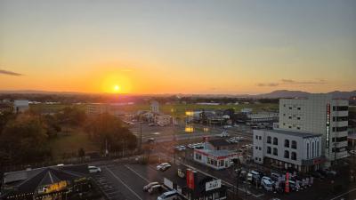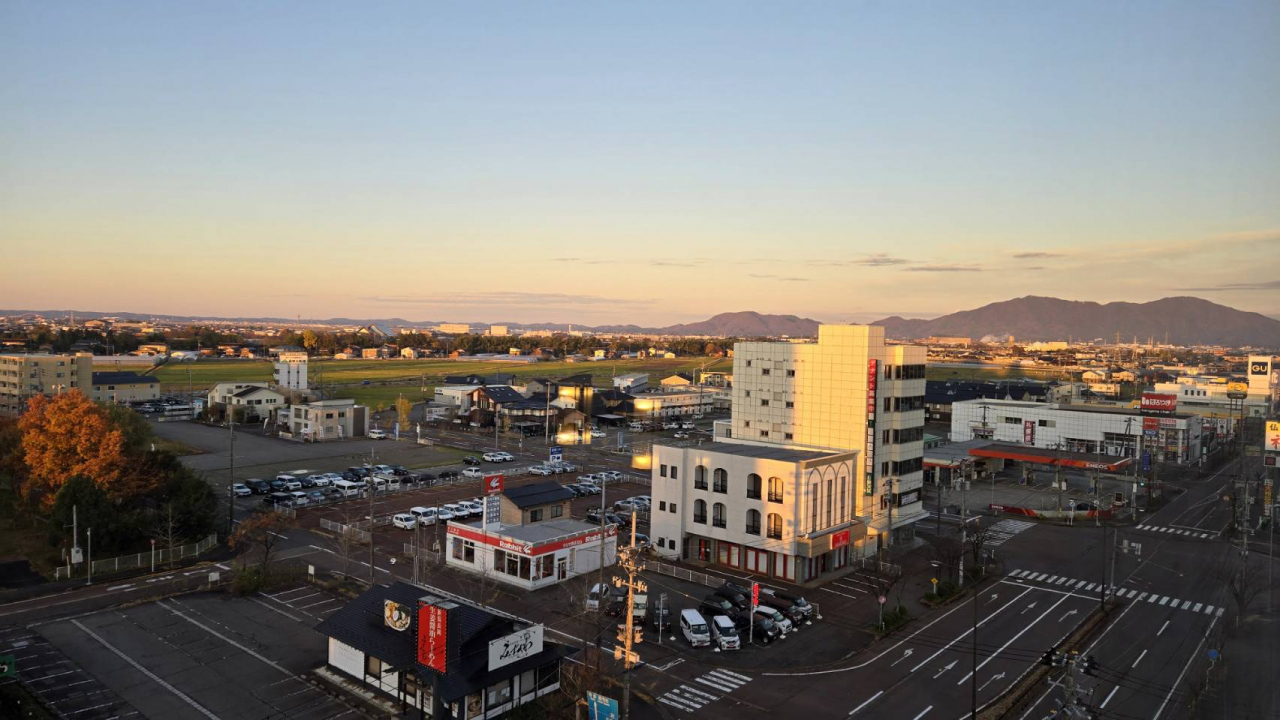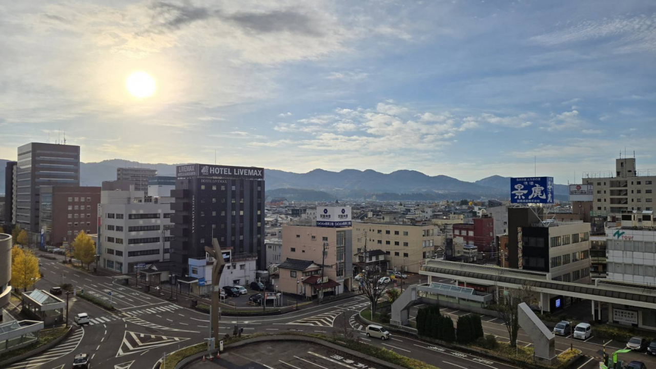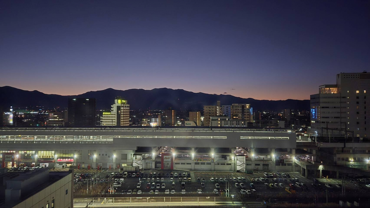 ツインルームの眺望は山形駅側で、高層階からは蔵王に山形の山並みが楽しめます、また中秋の名月も部屋から楽しめました