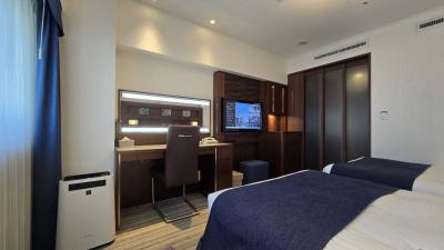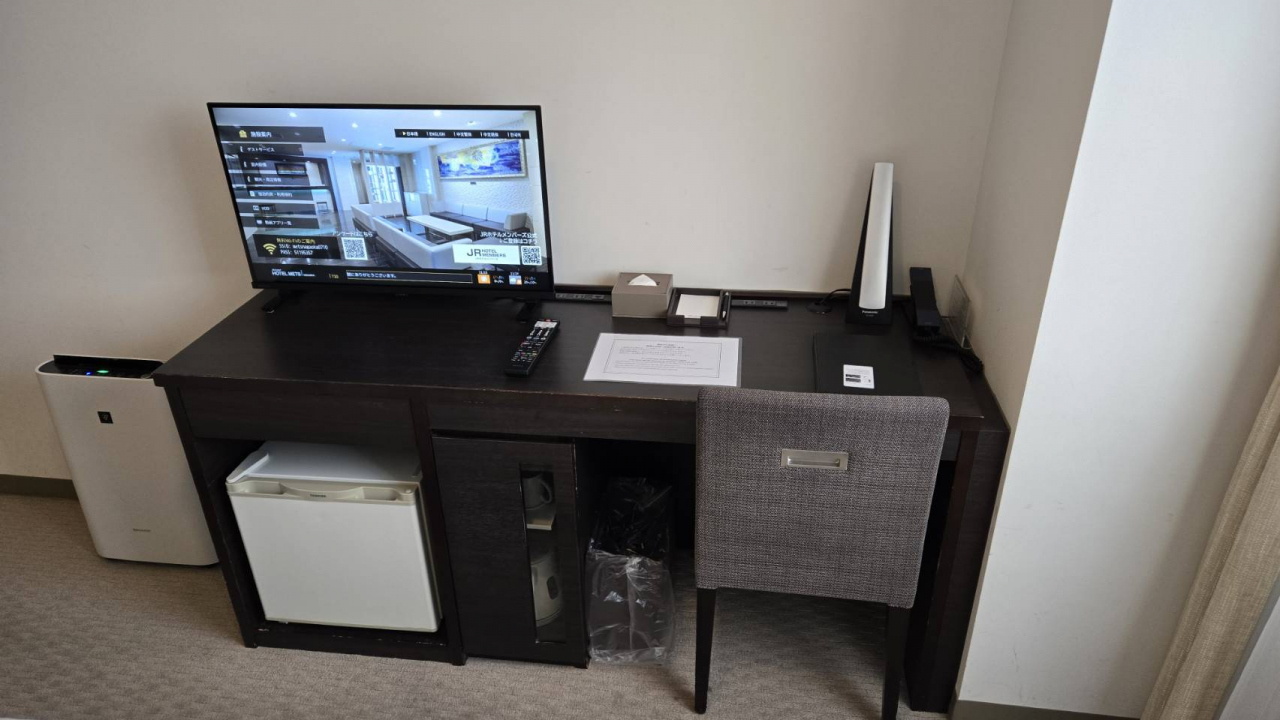 部屋はリッチモンドホテル標準のデュベスタイルのベッドメイキングに、シモンズのベッド、加湿空気清浄機、テレビはスマートテレビでユーチューブ等も見られ良いですね