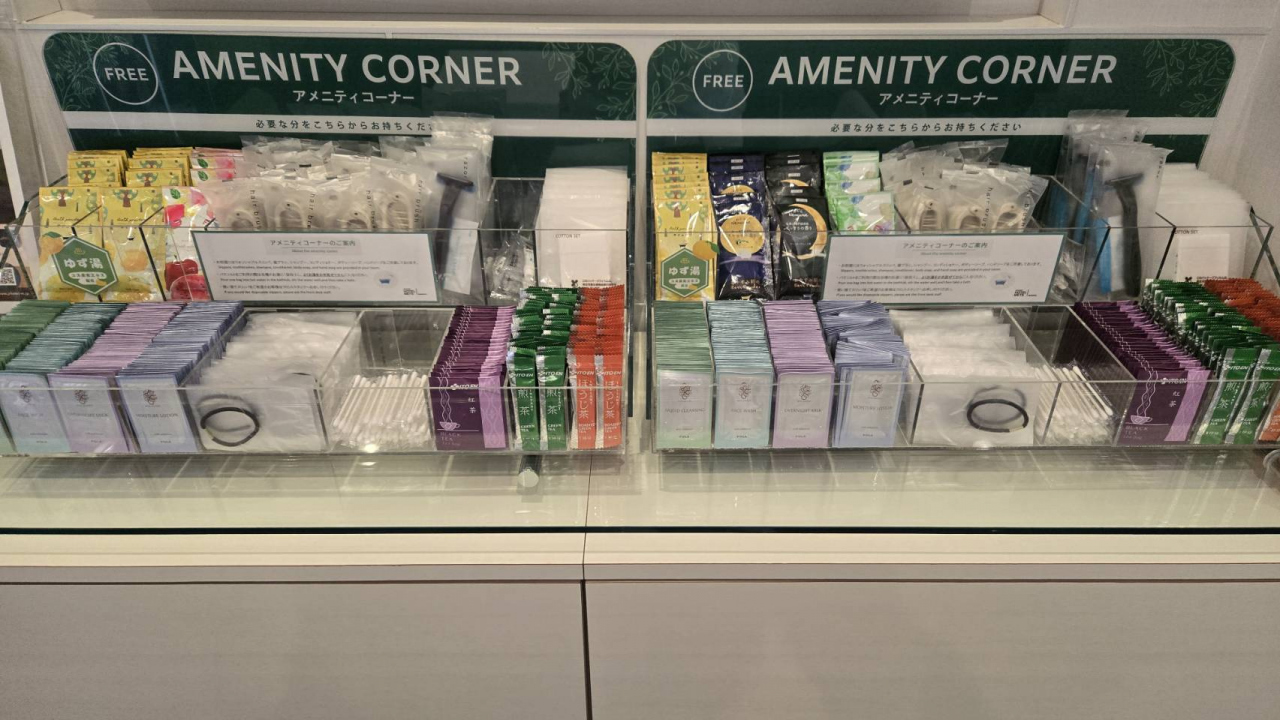 アメニティーは1階のアメニティーバーで通常の物に、基礎化粧品、ドリップコーヒー、紅茶等があり、共有部8階に大浴場にラウンジ、2階には製氷機に電子レンジもあって便利です