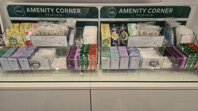 アメニティはハブラシ以外は必要な物をもらいますが、紅茶や入浴剤、基礎化粧品もあって便利です、コーヒーはアメニティコーナー近くにコーヒーマシーンがあります