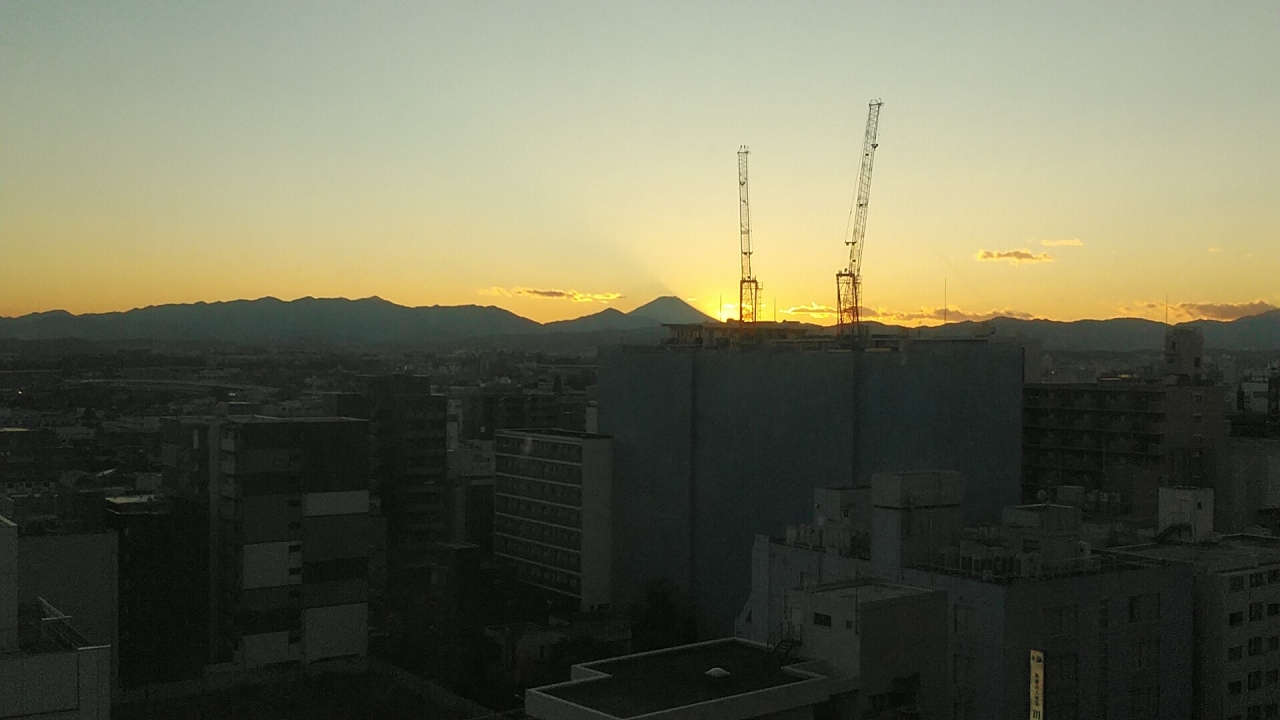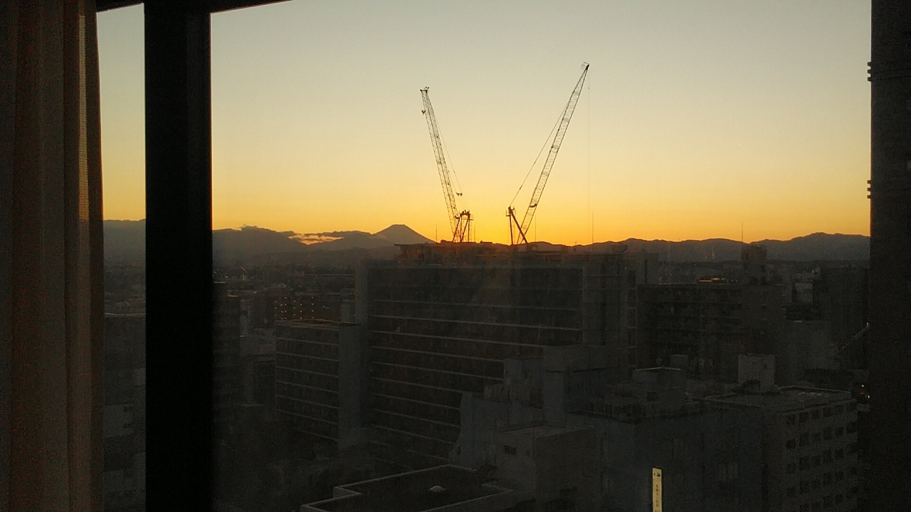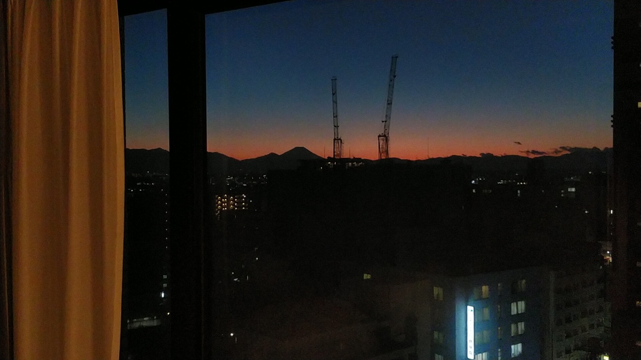 部屋は10階にアサインされ沼津駅側で海も望め、まだ日の入り時刻が早いので部屋からは夕陽に朝日も見られてよかったです。またエレベーターホールからは愛鷹山の上に顔を出してるような真っ白な富士山も綺麗でしたw