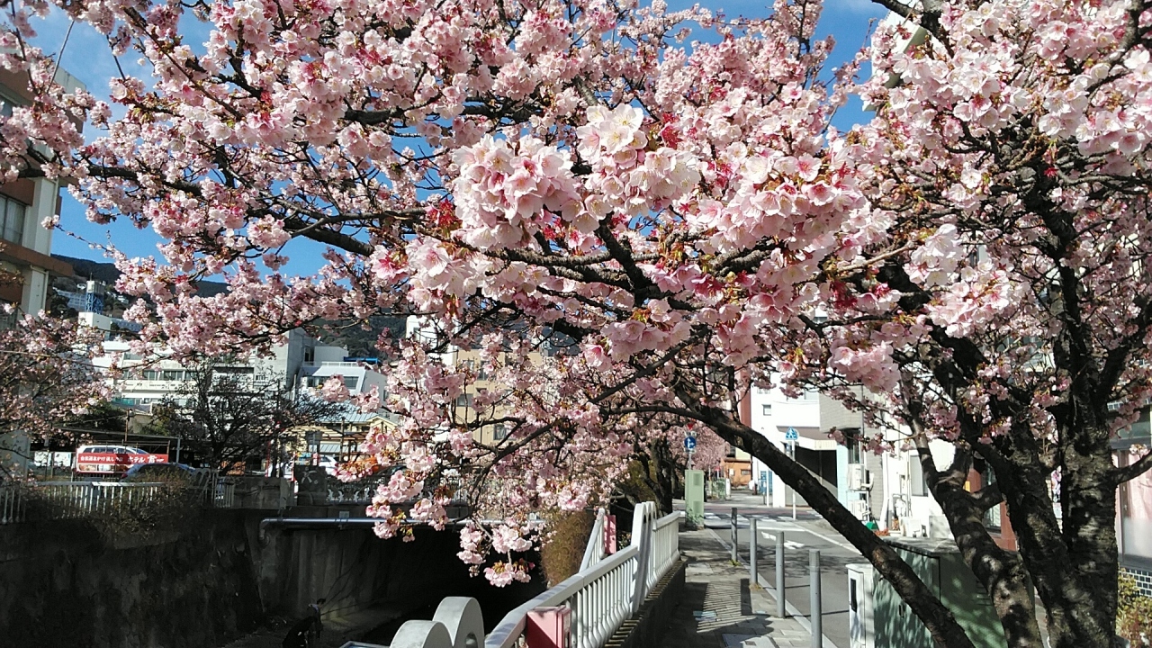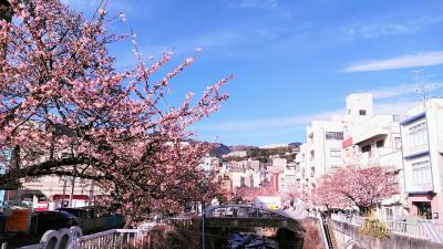 あたみ桜糸川桜まつり1月6日~2月4日まで開催中です。1月23日に訪問しましたが見頃で、熱海駅からも徒歩圏で1月に綺麗な熱海桜が見られて良いですね糸川沿いに桜並木が続き、海側から行くと上り坂になります。開花が1ヶ月くらい続くみたいで春を感じられておすすめです。ソメイヨシノより濃いピンクで可愛い桜です。