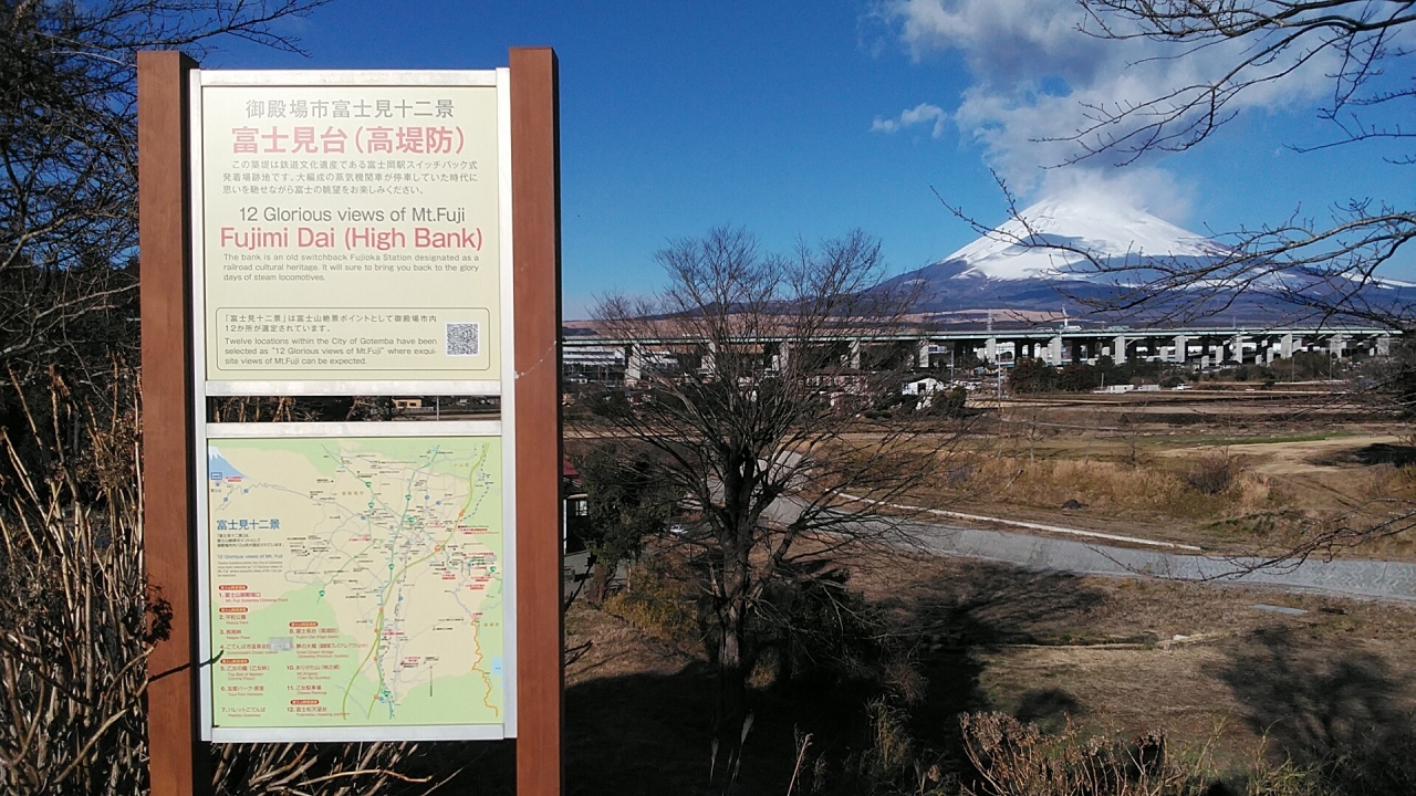 沼津に滞在中に富士山が綺麗に見えそうな所が、ないかなぁと思って探していたら見つけました。アクセスは沼津駅から電車で26分 330円で富士岡駅到着し、駅から歩いて5分くらいです。少し高台の堤防の上から美しい富士山が望めます。ソメイヨシノが何本かあって桜に富士山の季節は綺麗でしょうね!電線も無いので画像では伝わらない雄大な富士山が楽しめます。沼津駅~裾野~富士岡駅(御殿場市)は車窓からの富士山も綺麗でした。