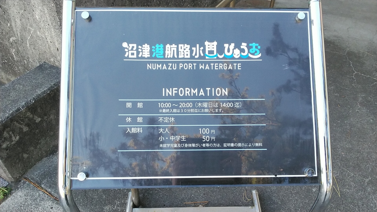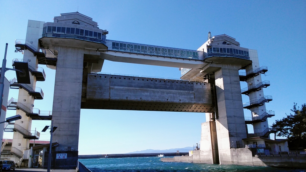沼津漁港から隣接してある展望施設の沼津港大型展望水門びゅうおで入場料100円で美しい眺望が楽め、当日は何回も入場可能だそうでお得ですね。360℃眺望できる展望台からは手前に愛鷹山がそびえていて、その奥に雪山の富士山が望め美しいですね、その他も弧を描くような駿河湾に松林、沼津の市街地も望めます。夜20時まで営業しているので夕焼けや夜景も綺麗そうですね!防災対策で作られた水門を上手く活用していてお薦めの施設ですね。