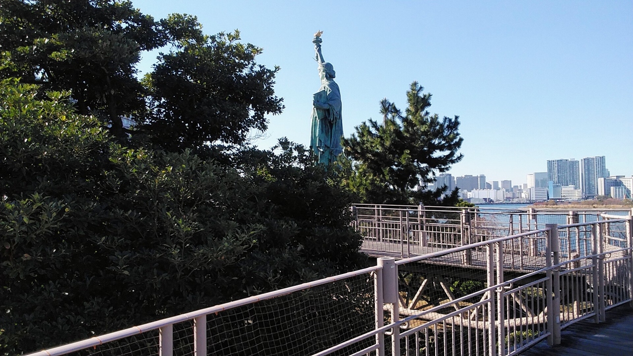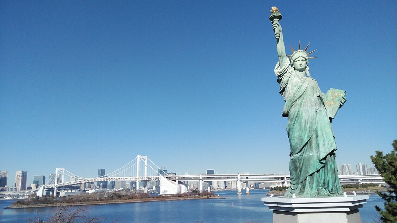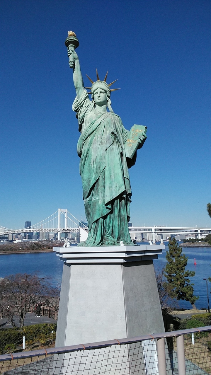 お台場にある自由の女神像はフランス政府公認の像で、現在の女神像は復刻像ですが、はじまりは1889年フランスパリのセーヌ川のシーニュ島に設置されていた自由の女神像が109年ぶりにフランスを離れて世界ではじめてお台場に1998年4月から1999年1月に展示されたのがきっかけです。展示の間も人気が高くその後フランスで自由の女神像を型取りフランスで作られた像で日仏友好のシンボルですね。自由の女神に海にレインボーブリッジも望めお台場の素晴らしい景色です。夜はライトアップもされてます。