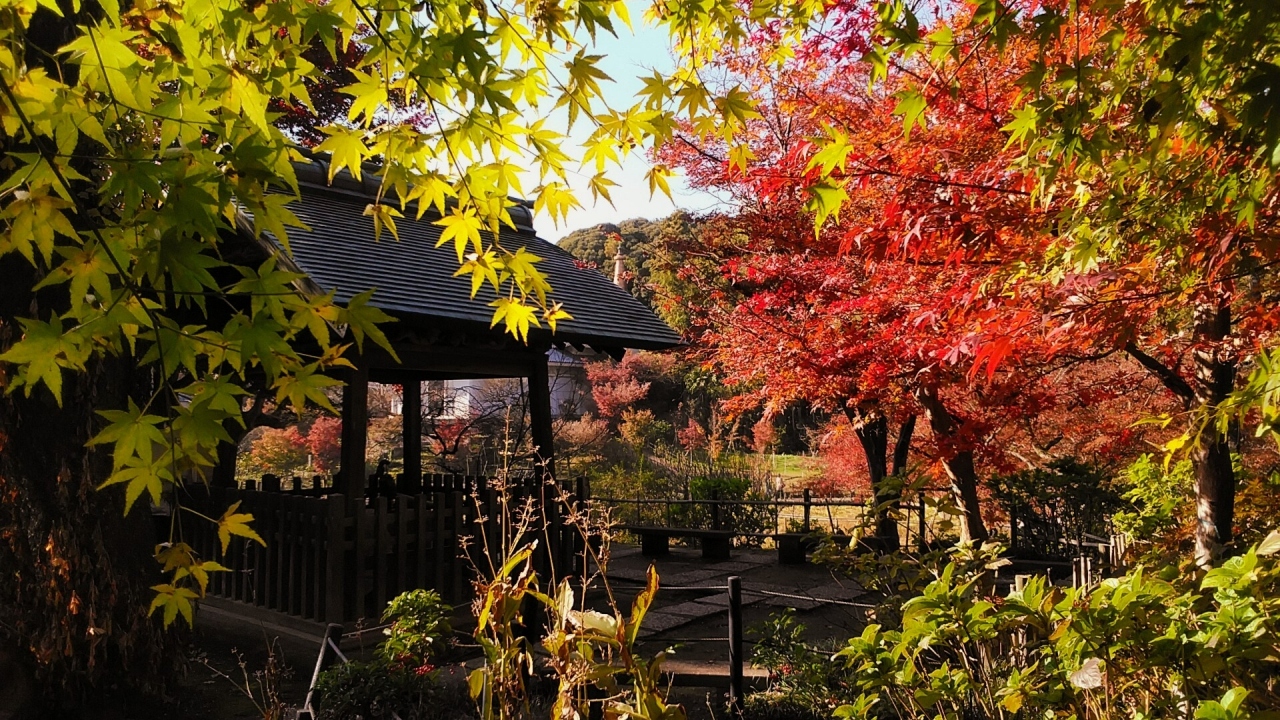 11月28日松戸市北小金の東漸寺境内のモミジは綺麗に紅葉してました