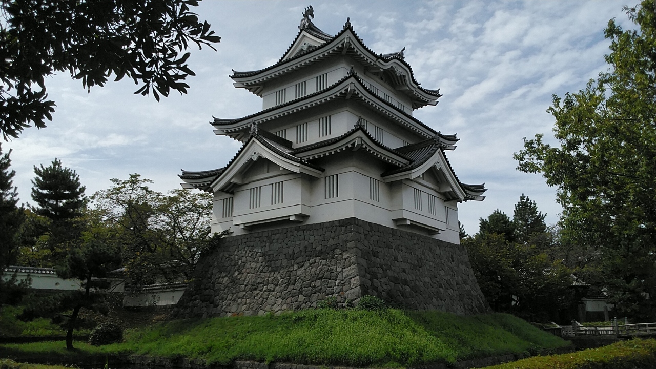 城址には再建された御三階櫓があり郷土博物館の中から渡り廊下を通って見学できます。城内も綺麗に整備されていて、花手水や提灯の展示も綺麗でした。
