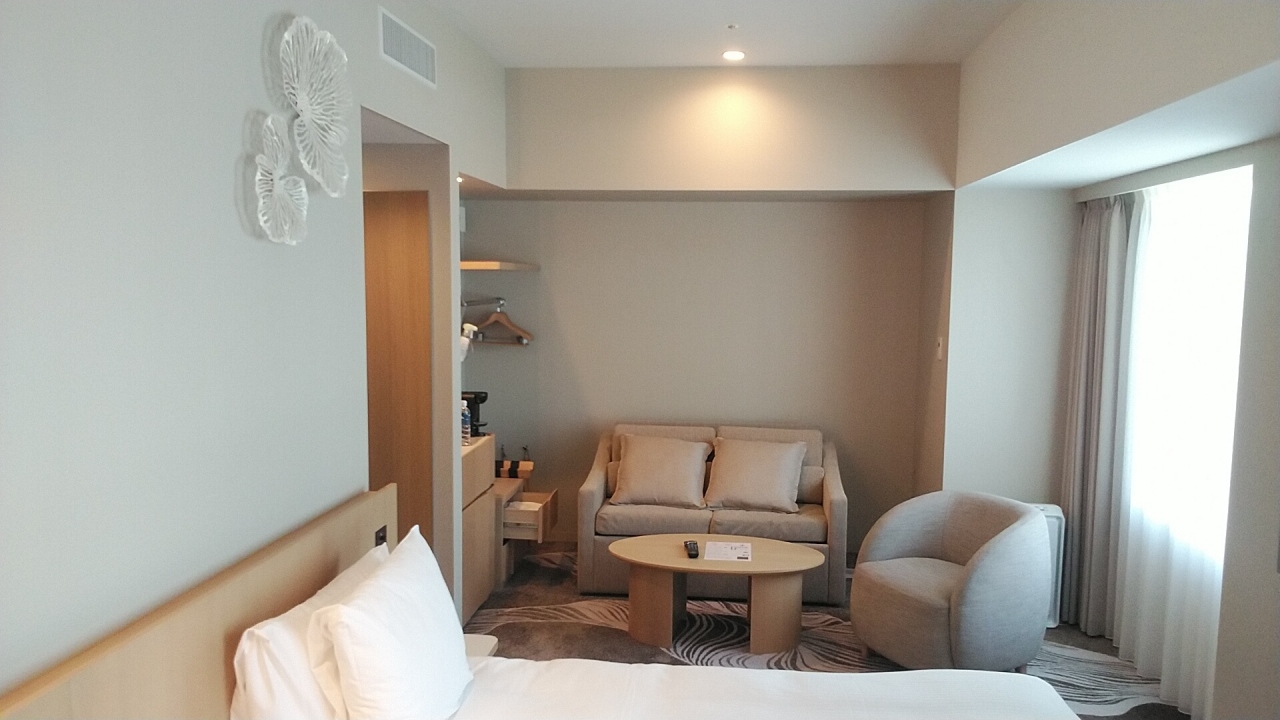 アクセスは、ゆりかもめ新豊洲駅から徒歩3分、市場前駅より徒歩2分で便利で、豊洲駅からも天気が良ければ運河沿いの豊洲ぐるり公園沿いの遊歩道を散歩しながらホテルに行くのもお薦めです!ホテル付近は少しづつ開発されて、市場の他にも徐々に開発されて来年2月には温浴施設併設の千客万来もオープンするので楽しみですね!今回はレギュラーフロアの最上階15階のデラックスツインにアサインされ、部屋は1名掛けと2名掛けソファーにテーブルもあり部屋でゆっくりできました。ベッドはデュベスタイルのベッドメイキングに加湿空気清浄機、ユーチューブ等も見られるスマートテレビで、飲み物はコーヒーマシーンに、紅茶、緑茶、ミネラルウォーターで良いですね。またお風呂、洗面所、トイレが独立で使いやすく、部屋には基礎化粧品があり、フロントで入浴剤のサービスがありゆっくりできました。デラックスツインの眺望は豊洲駅側で高層マンションが多いいので日曜宿泊でも明るく綺麗でした。スタッフの対応も良く心地よい滞在でした。