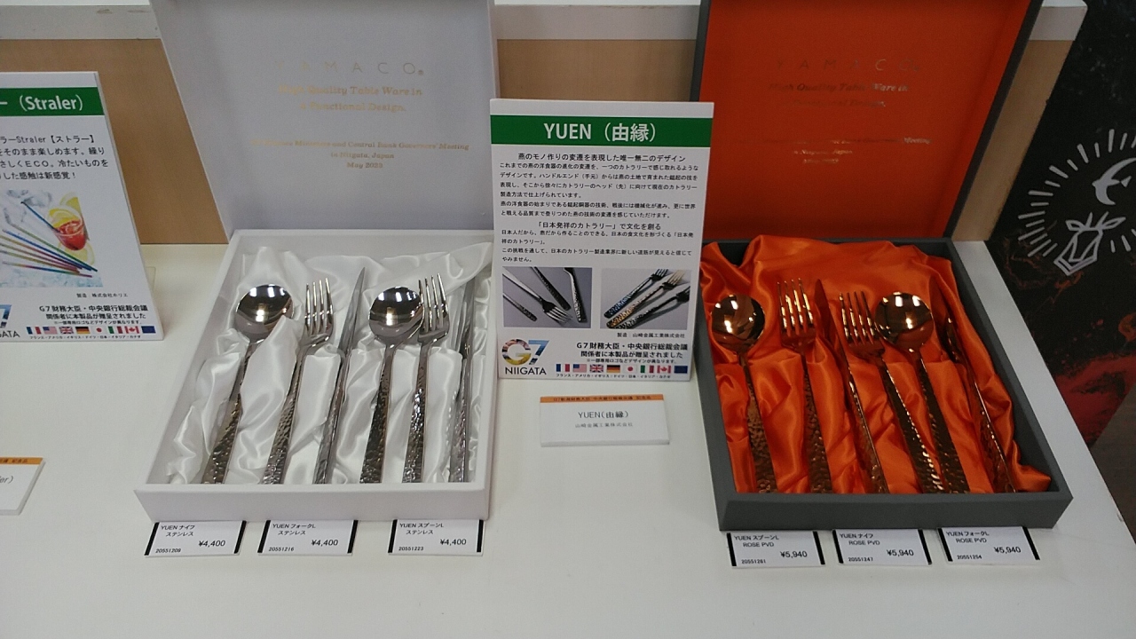G7関係者に贈呈されたお土産は燕の高い技術でつくられたカトラリーにチタン製のストロー、販売もしてます
