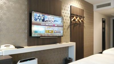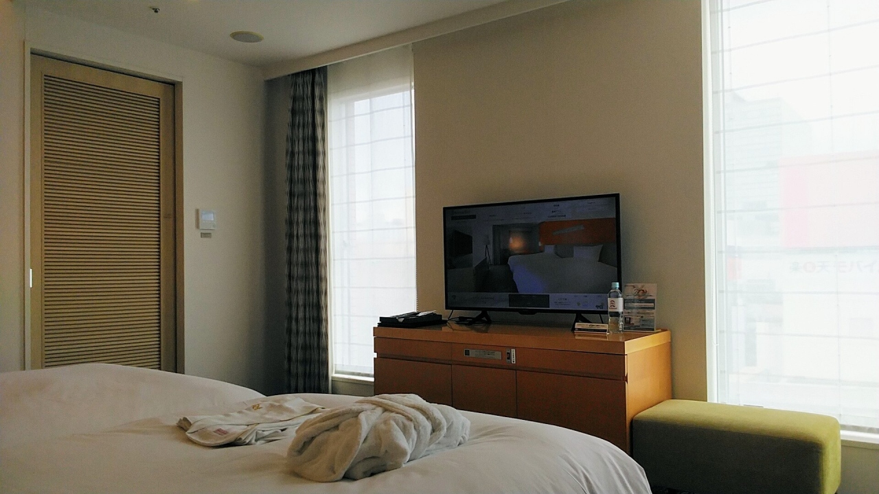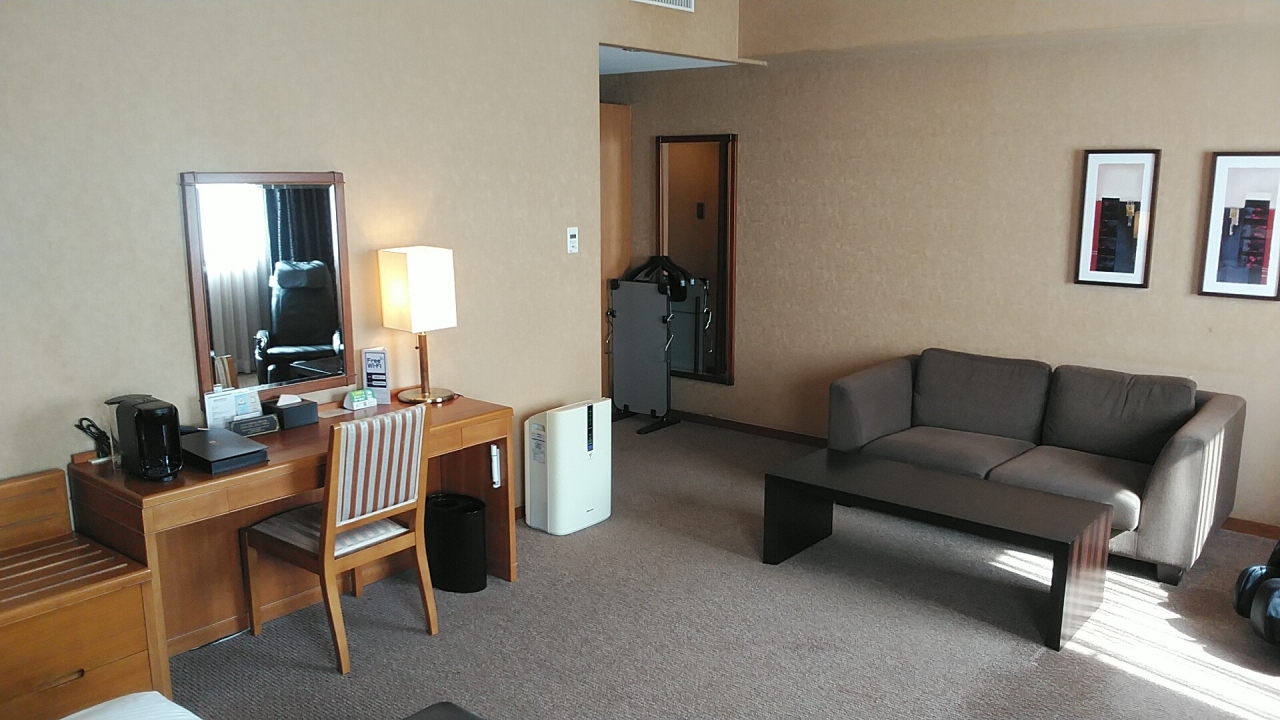 プレミアツインはコーナーに眺望の良い大きな窓にその他2カ所に窓があって開放的でよかったですね!眺望も仙台駅が正面にあり仙台の街並みも楽しめます。部屋はデュベスタイルのベッドメイキングのベッド2台に、加湿空気清浄機、ソファーにテーブル、大型テレビでゆっくり過ごせました。