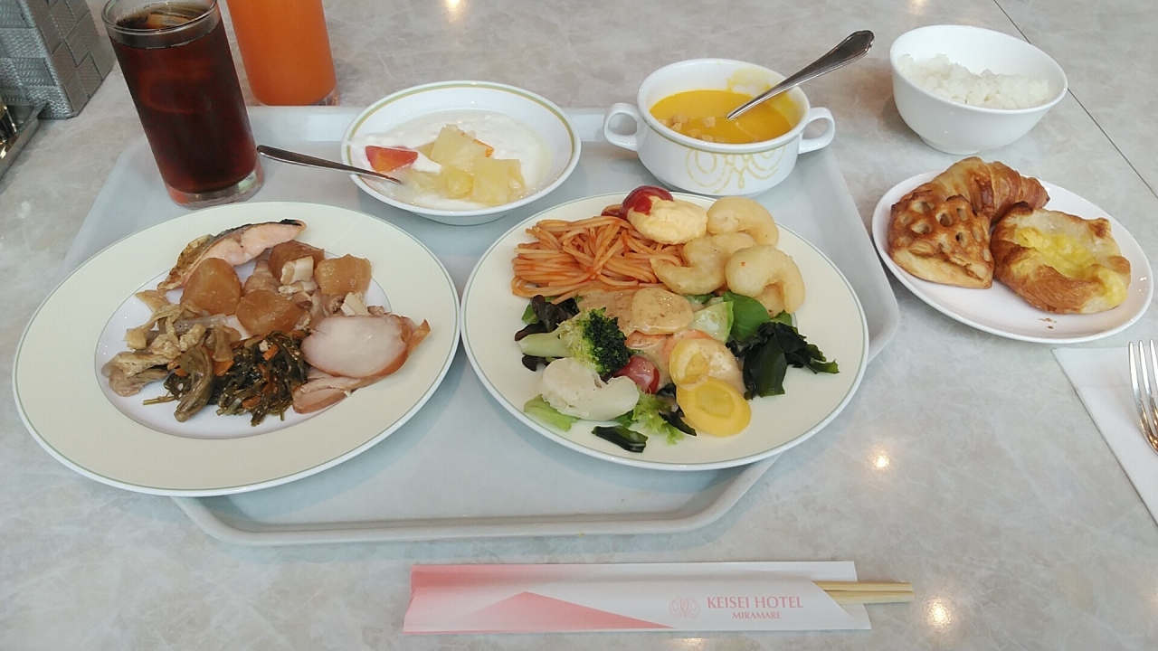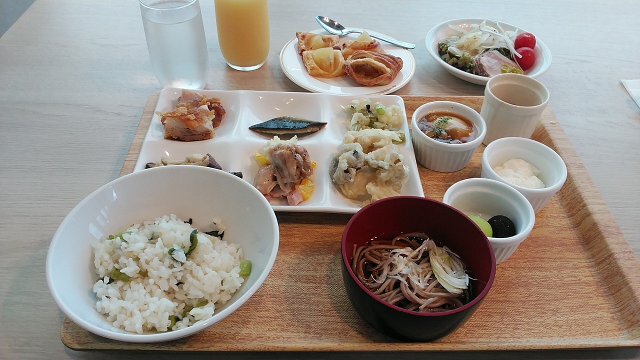 ホテル2階にはファミレスのガストが入っていてウェルカムドリンクサービスに、朝食はリーズナブルで5種類から選べて、ドリンク、サラダ、デザートはフリーでした。