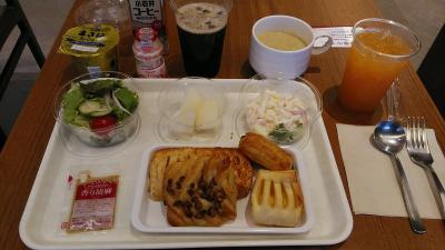 朝食も無料で焼きたてのパンに、スープ、サラダ、小岩井のヨーグルト等で満足でしたが、
