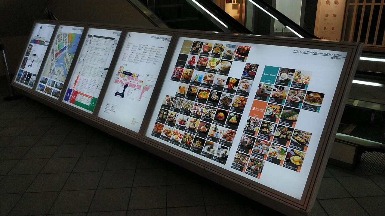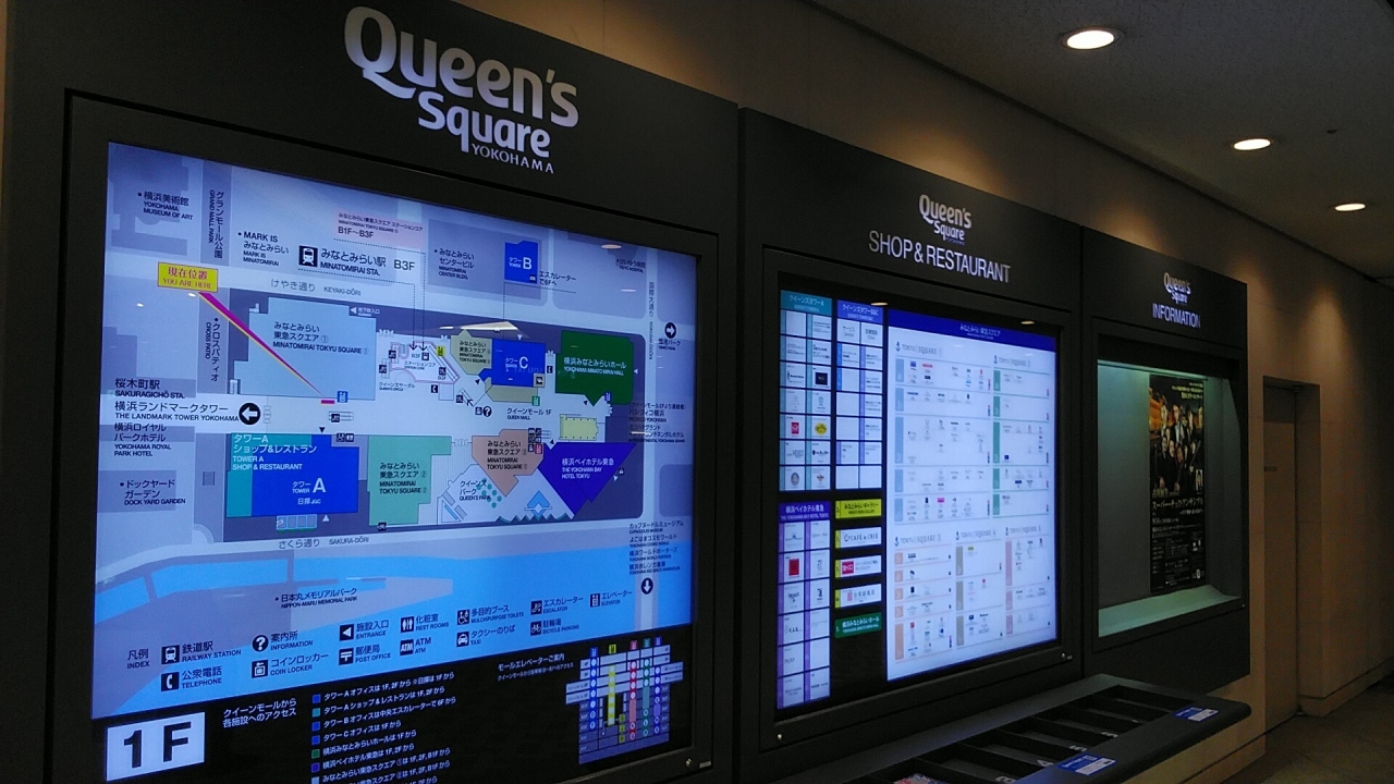 みなとみらい駅直結で地下4階深くから、吹き抜けをあがった所にある商業施設で便利です。地下3階から4階までが商業施設で120店の店舗があります。その上にはオフィスや、ホテル横浜ベイホテル東急などがあり綺麗な施設です。インフォメーションカウンターは1F・2Fクイーンモール受付時間10:00〜18:00です。