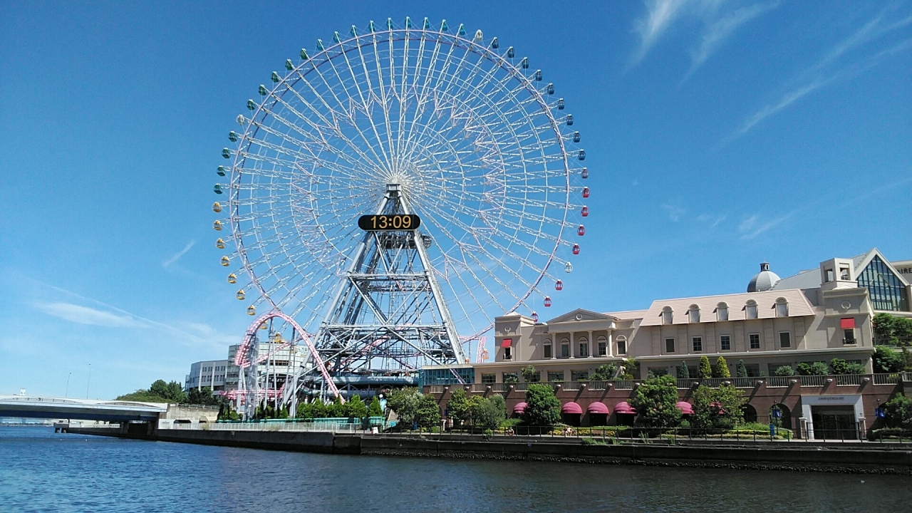 コスモワールドで有名なのはライトアップが綺麗な大観覧車コスモクロック21ですね!また時計も大きく時計代わりに便利ですねw