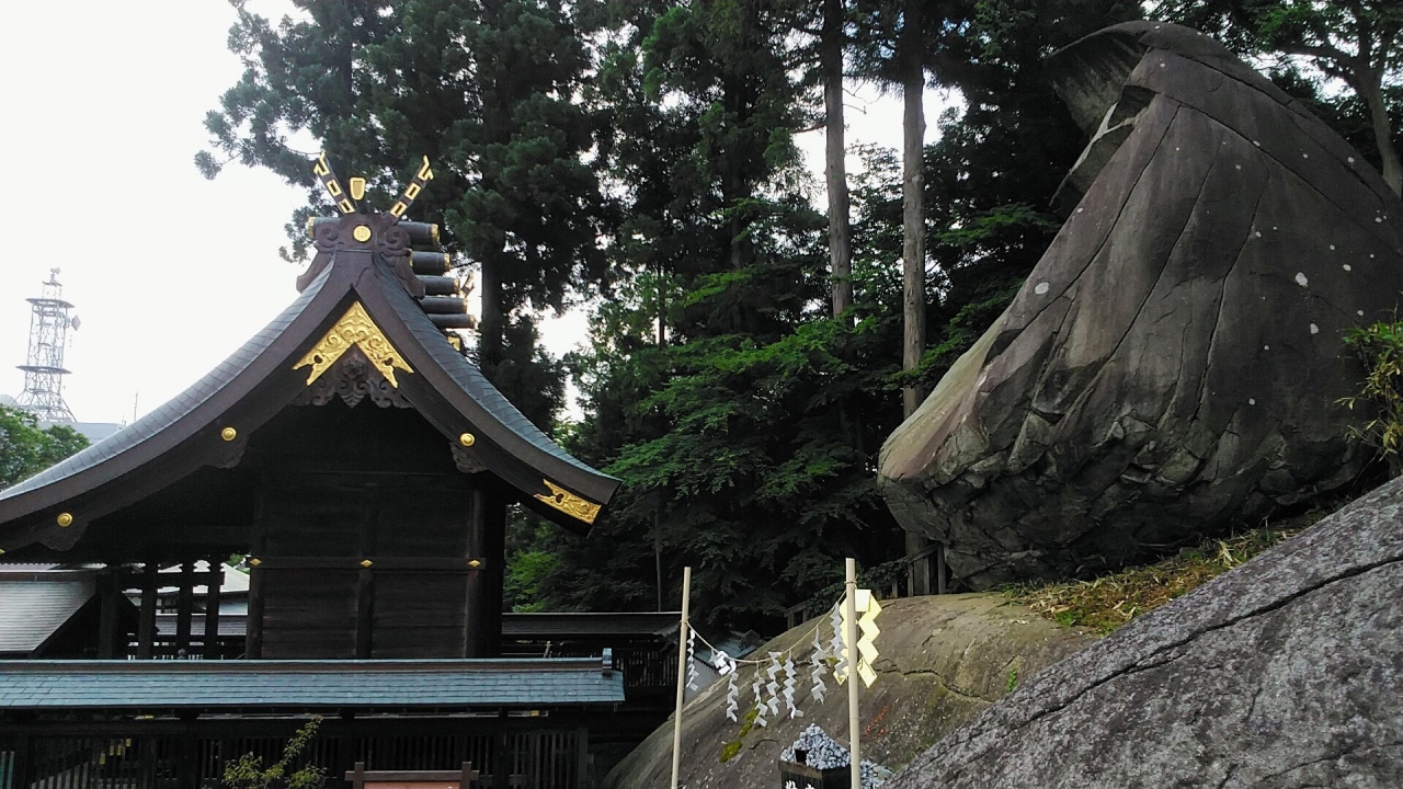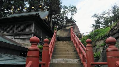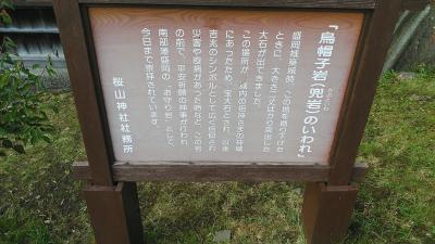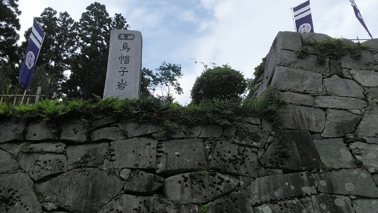 桜山神社の裏側にある階段をあがっていくと高さ6メートル以上もある大きな岩が烏帽子岩です。南部藩第27代藩主・利直の時代に盛岡城築城の工事中に出てきた岩だそうです。烏帽子岩についての案内板には(盛岡城築城時、この地を掘り下げたときに、大きさ二丈ばかり突出した大石が出てきました。この場所が、場内の祖神さまの神域にあったために、宝大石とされ、以後吉兆のシンボルとして広く信仰され災害や疫病があった時など、この岩の前で、平安祈願の神事が行われ、南部藩盛岡の「お守り岩」として、今日まで崇拝されています。)です。大きな岩で形も良くエネルギーを感じますね!