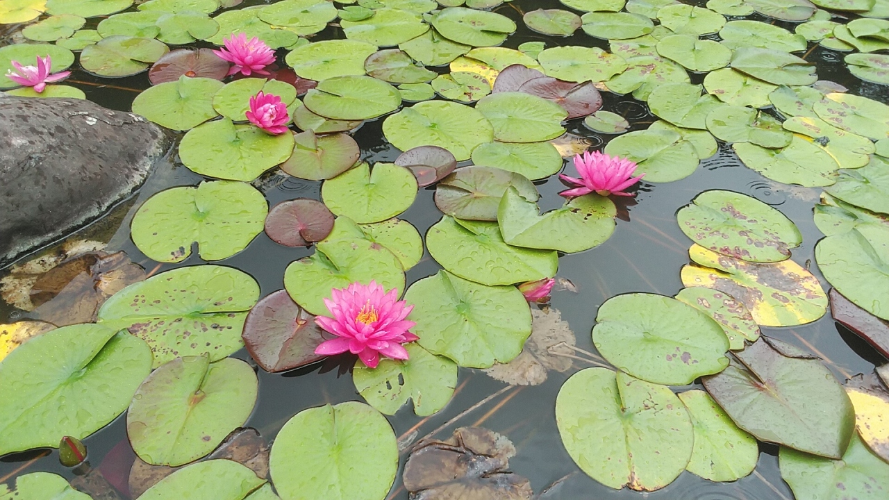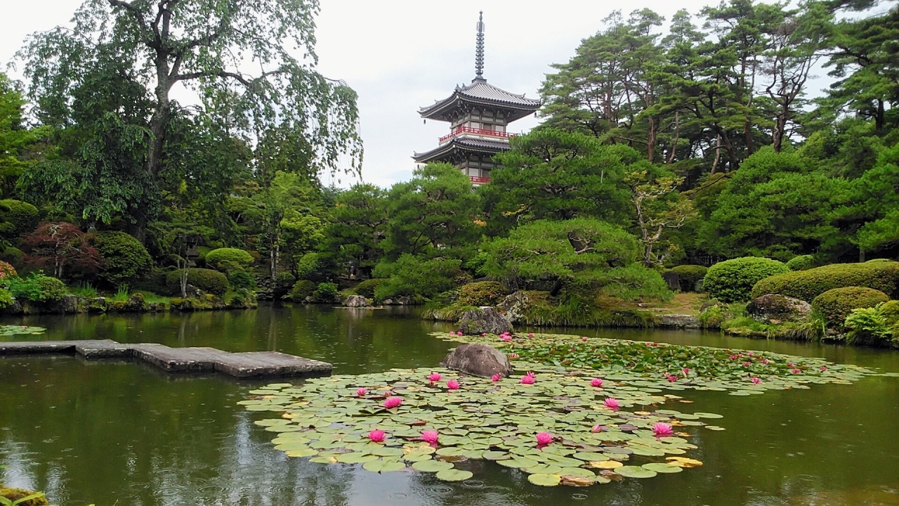 6月28日訪問 輪王寺の池泉回遊式庭園は八重の睡蓮が綺麗でした。