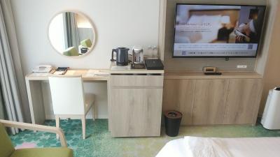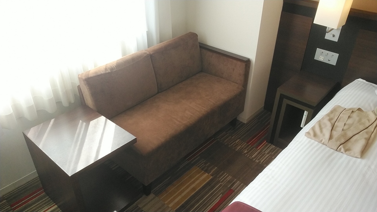 部屋は必須条件のデュベスタイルのベッドメイキングのベッドで幅も168cmあり快適で、加湿空気清浄機、ドリップコーヒー、緑茶、またフロントで入浴剤に基礎化粧品がもらえるので良いですね。