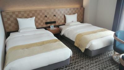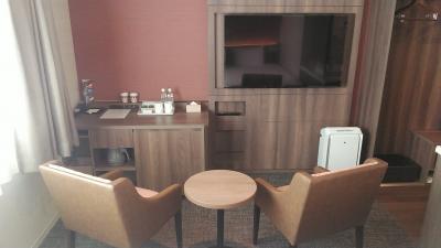 部屋はデュベスタイルのベッドメイキングのベッドに加湿空気清浄機、ミネラルウォーター、歯ブラシ、クシ、綿棒、粉茶等が部屋にあり、フロント階で、ドリップコーヒー、紅茶、基礎化粧品がもらえます。もちろんお風呂が独立で、洗面台のカウンターも広く便利で快適に過ごせました。