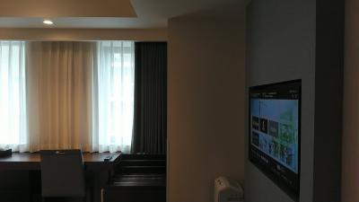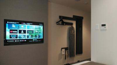 部屋はシンプルでスッキリしていて、デュベスタイルのベッドメイキングのベッドで寝やすく、加湿空気清浄機、壁掛けのスマートテレビで表記面積15㎡より広く感じよかったですね!