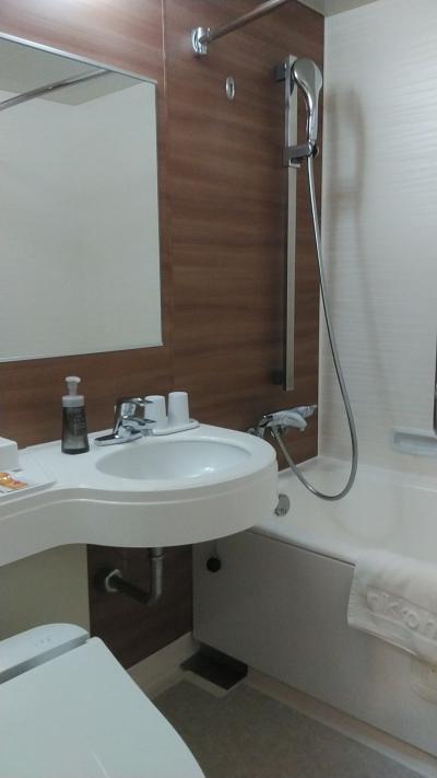 部屋はシャワールームに、トイレと洗面台が同室ですが最上階13階に温泉大浴場があって眺望も良くゆっくり楽しめます。温泉は肌触りが良く少しぬめりのある気持ちよい泉質でした。