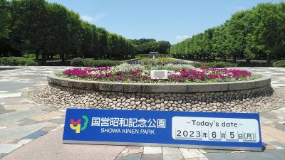 今回は6月5日訪問で紫陽花と花菖蒲を見にいきました。入口は立川駅から徒歩15分くらいの立川ゲートから入りました。入口付近には秋に人気の黄葉が素敵なイチョウ並木があり、